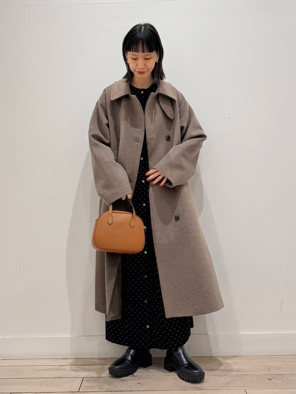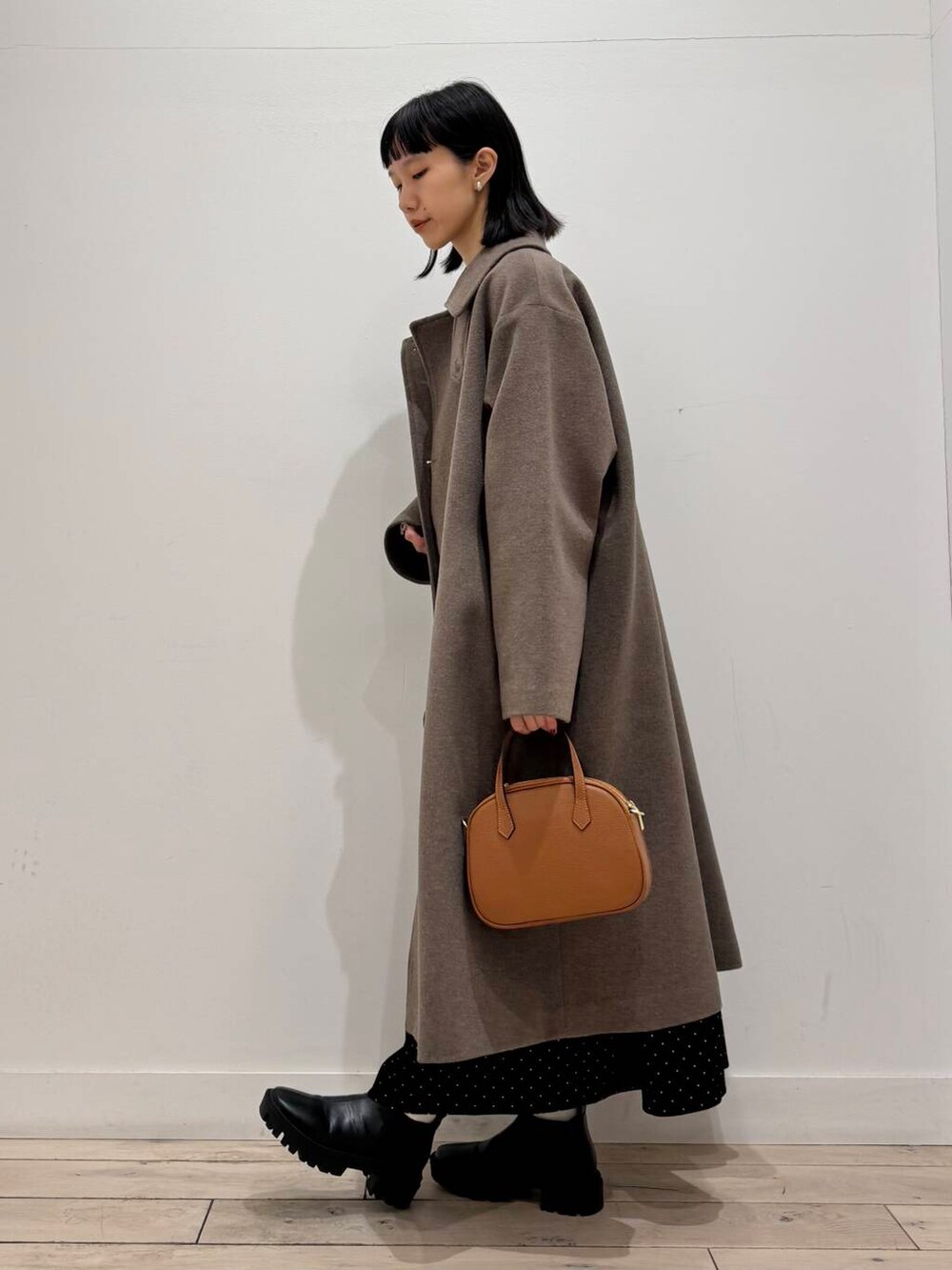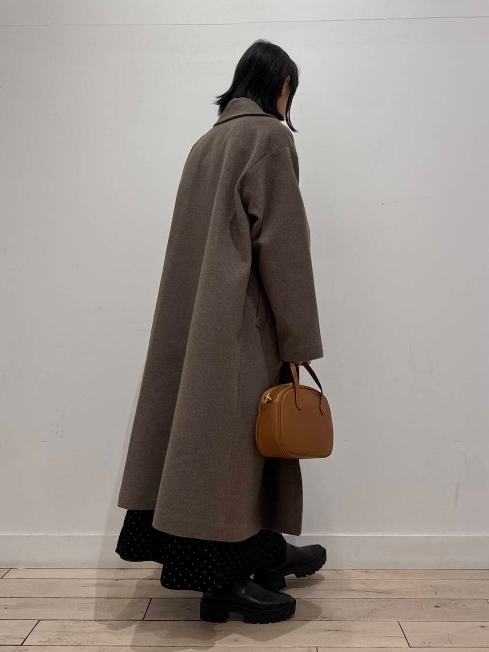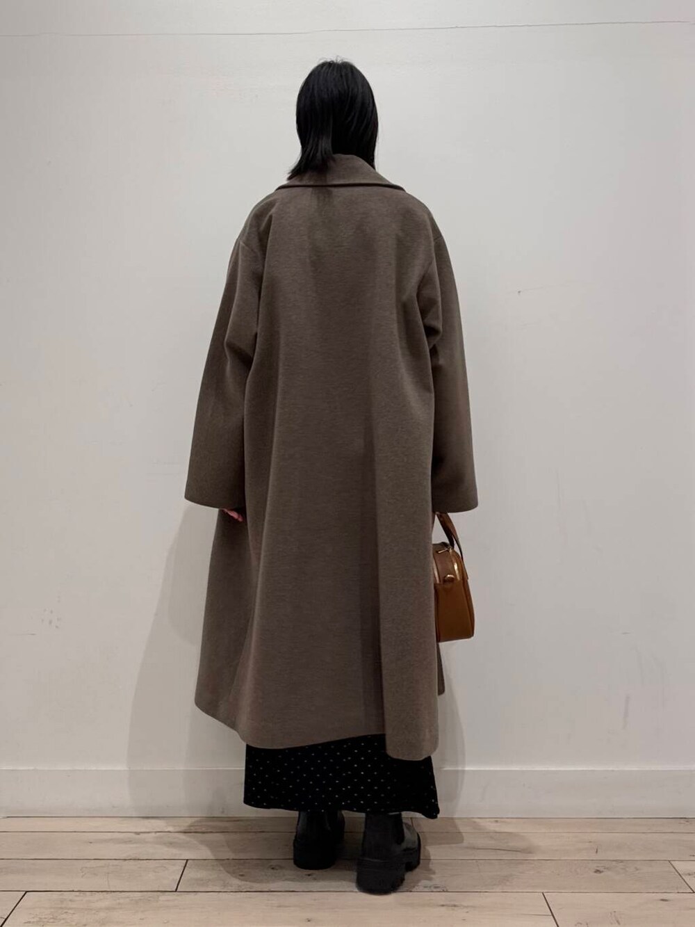 ウールロングコートは見た目よりも軽いので、是非店頭で羽織ってみてください◎腕周りもゆとりがあって分厚目のニットでも羽織れちゃいます!