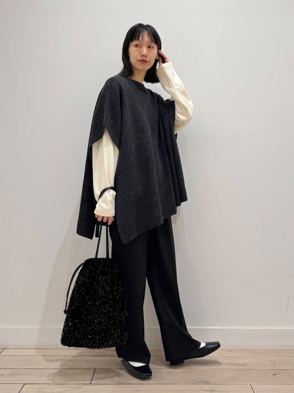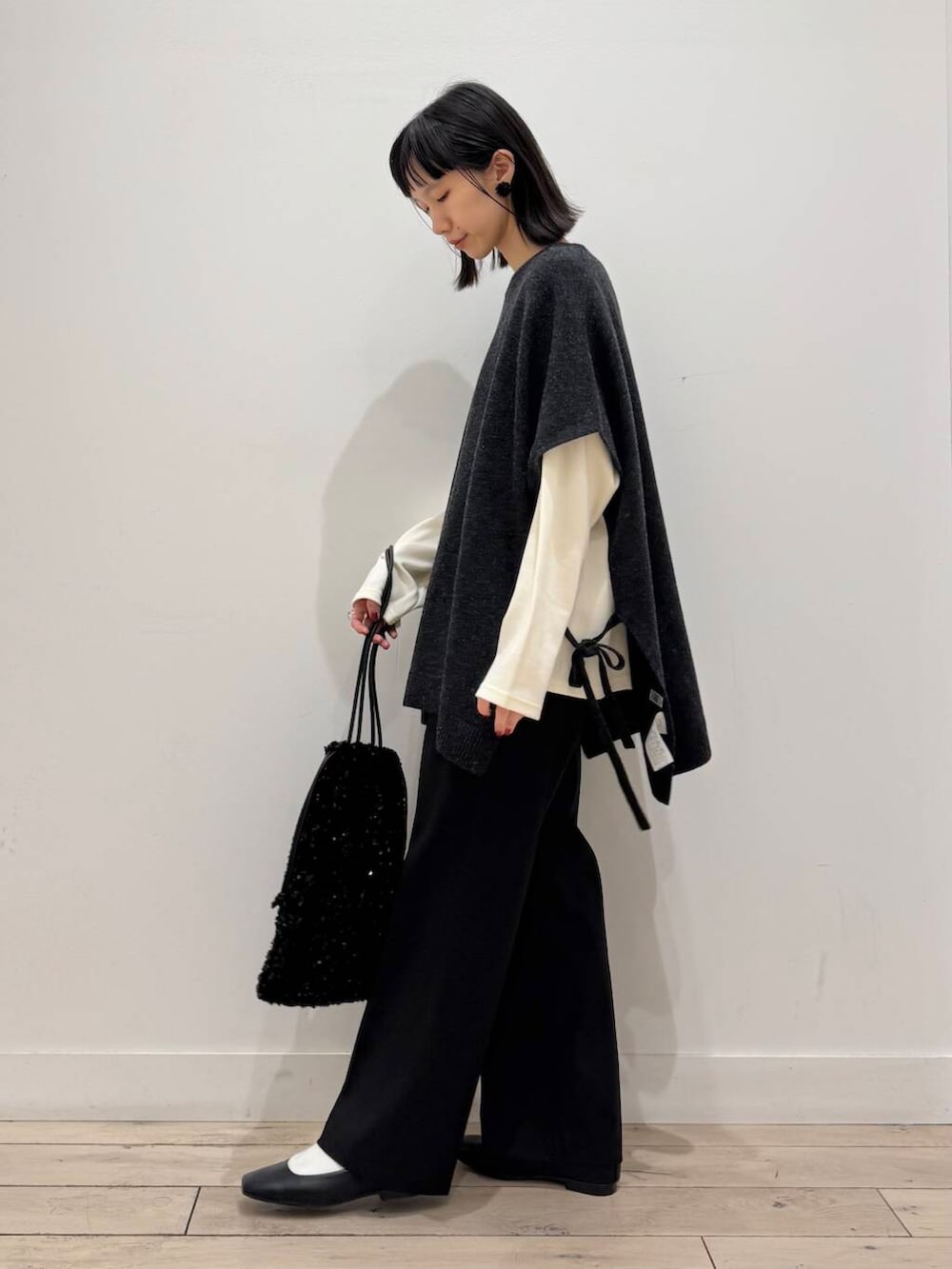 ニットベスト、ゆるさがとってもかわいいです◎サイドが閉じておらず紐で結ぶタイプなので、インナーにスウェット等入れてもゴワゴワしません!