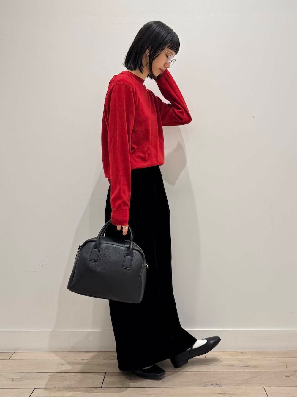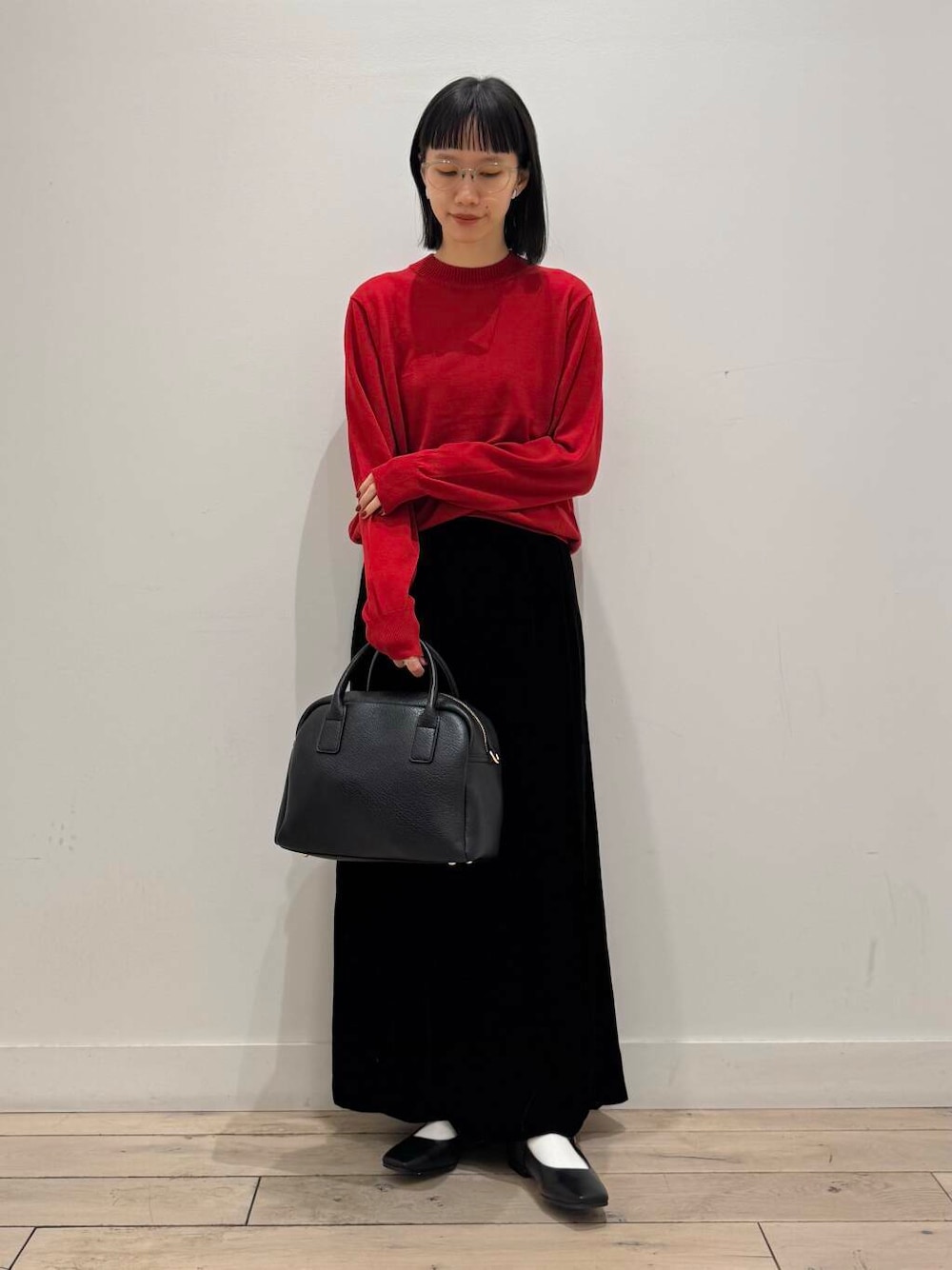 ベロアは冬のイメージが強いので、着ると一気に季節感を出せておすすめです◎こちらのベロアスカートは分厚くなく、ウエストも楽ちんなタイプなので着心地がとてもいいです☺️