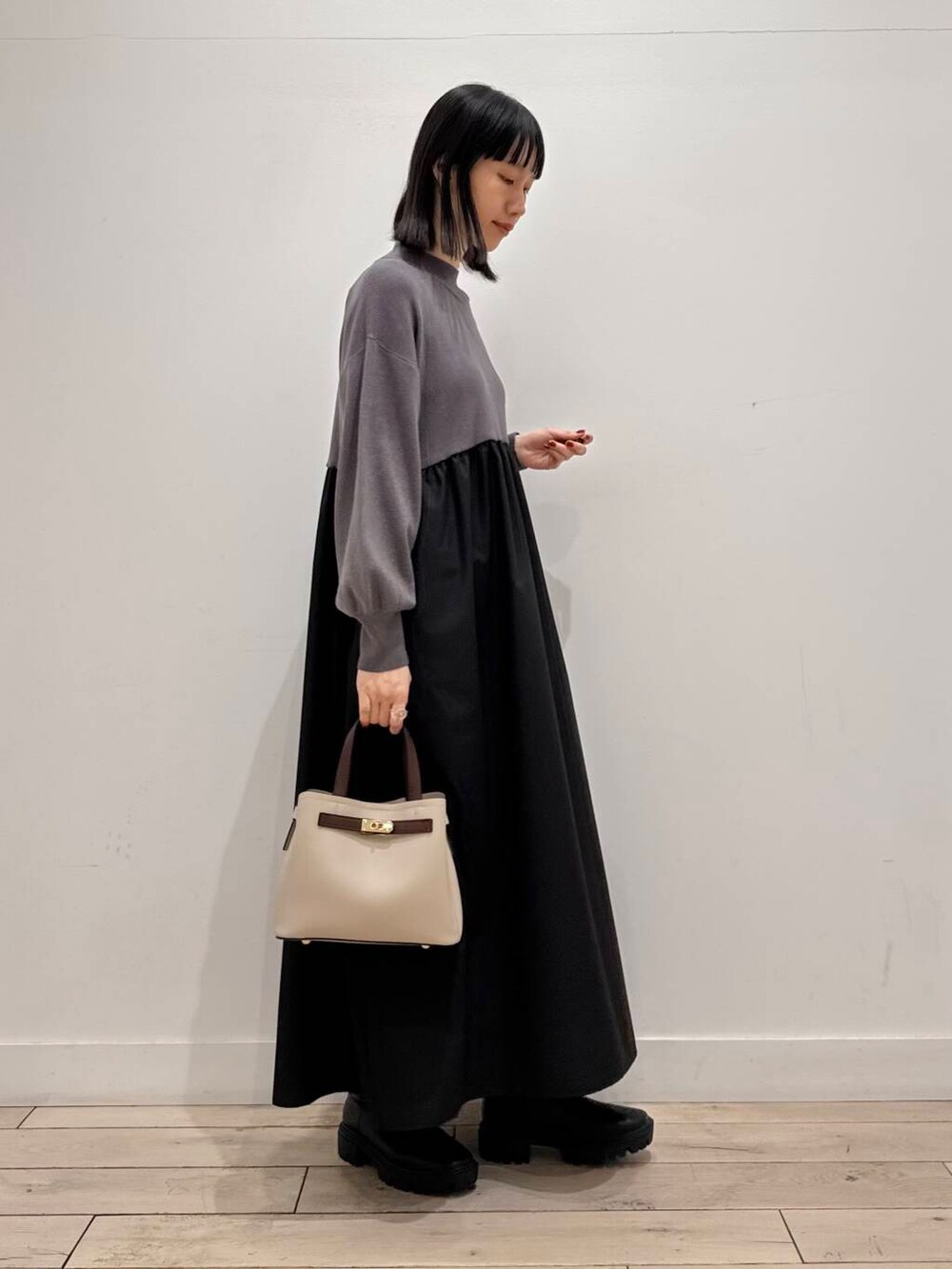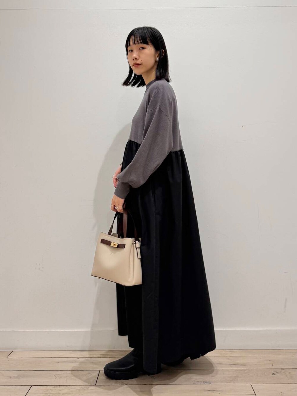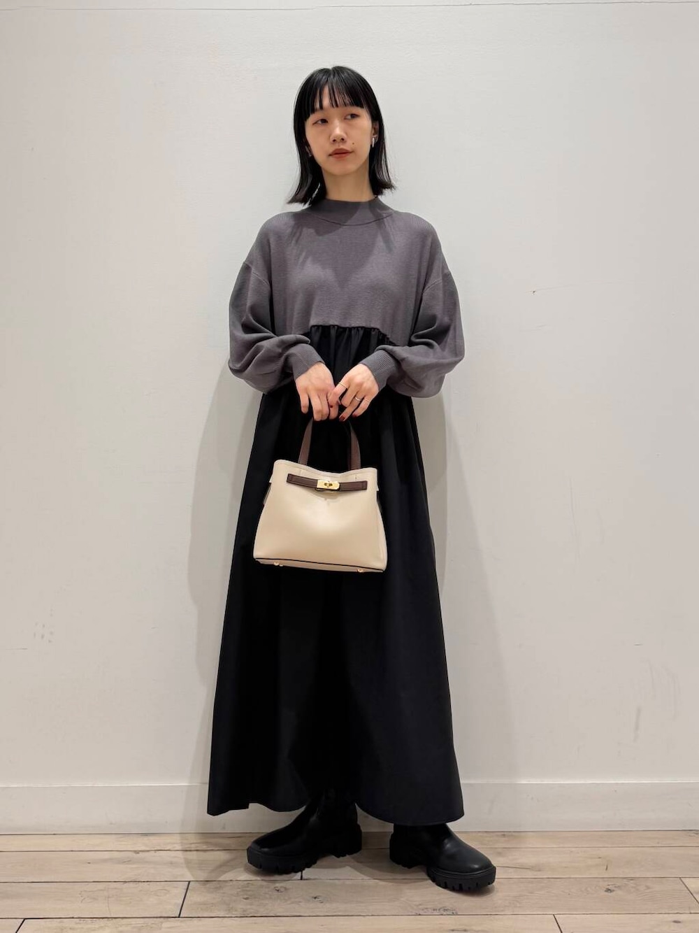 Sonnylabelのドッキングワンピース、1枚でニットとスカートを着てるようなデザインで楽ちんかわいい1枚です☺️