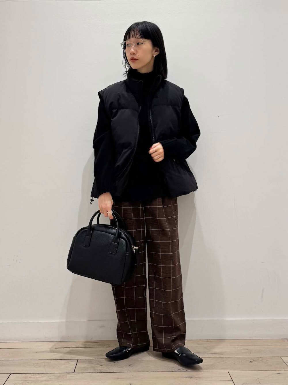 チェックパンツ、柄の線が細いので柄感が強くなくコーデが組みやすいです◎