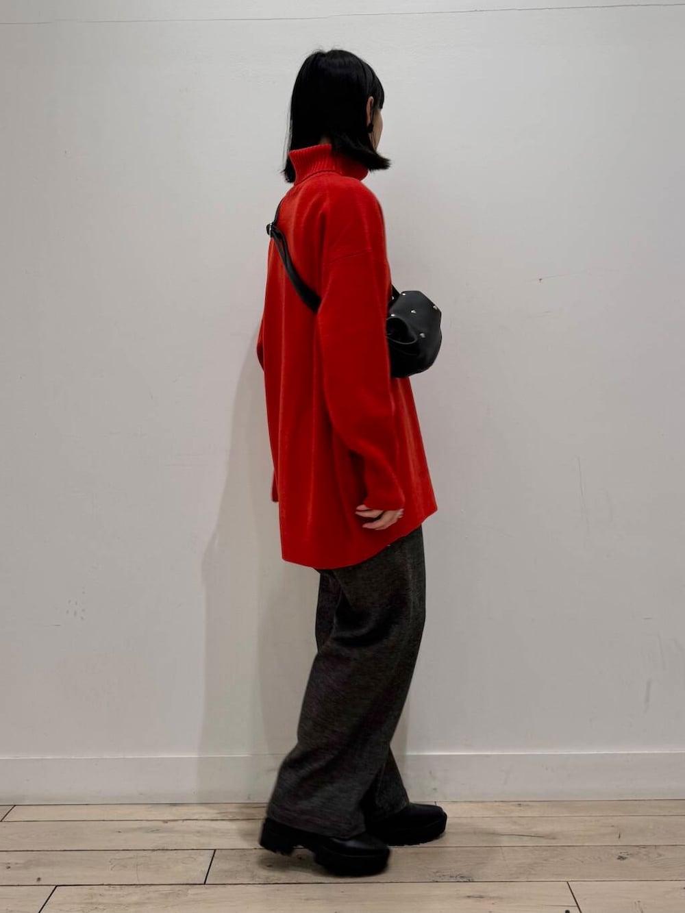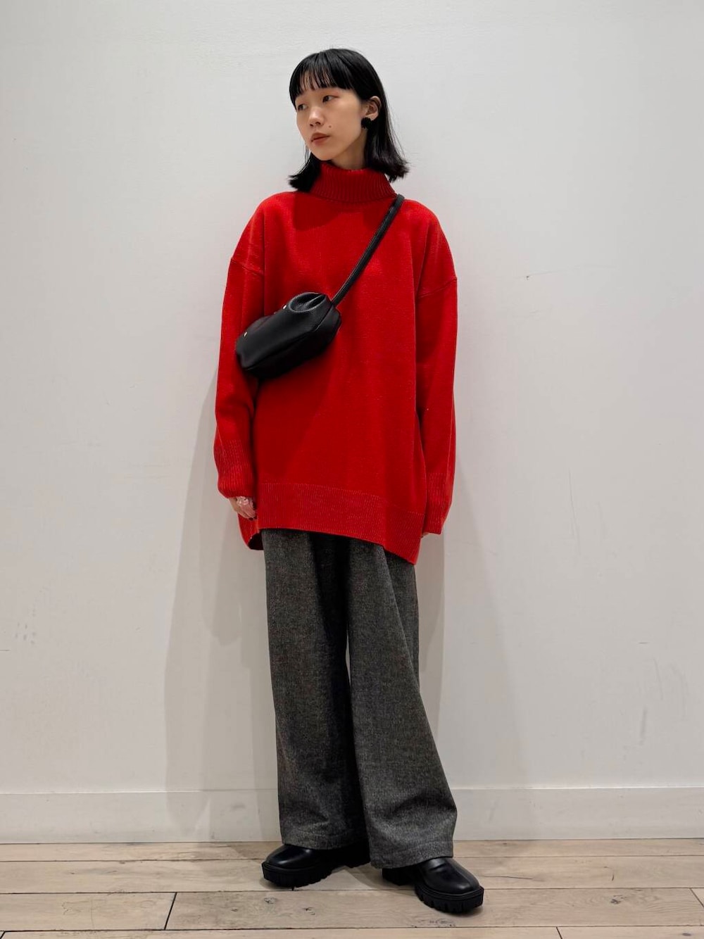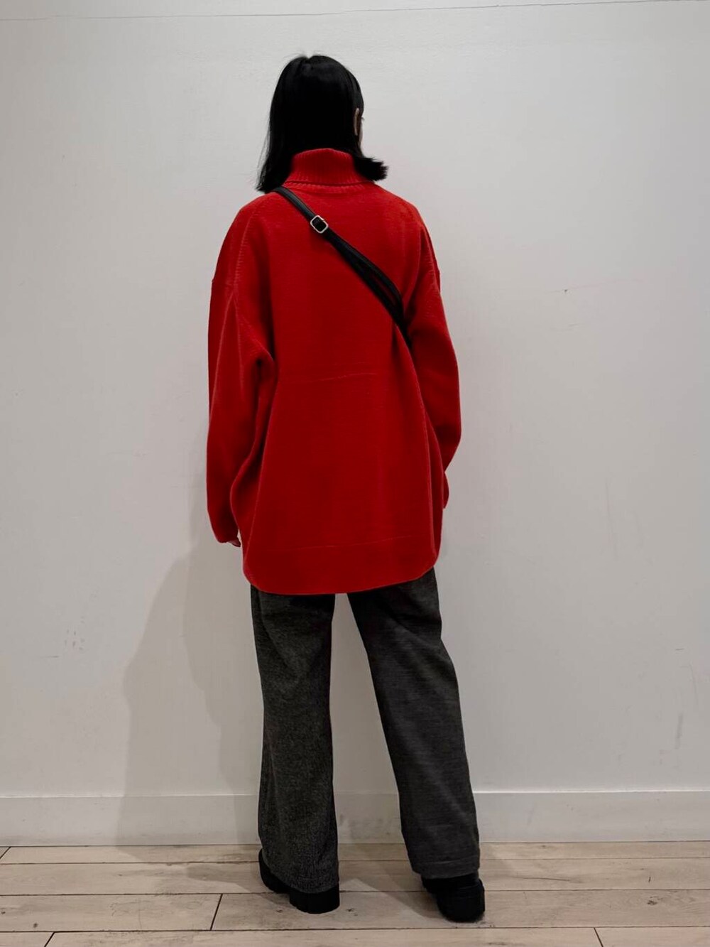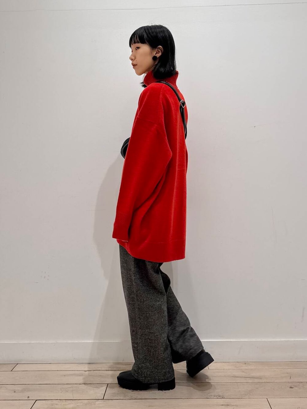 ニットはチュニック丈なのでゆるっとお尻がすっぽり隠れます!ストレートパンツやストレートのスカートが組むのにオススメです☺️