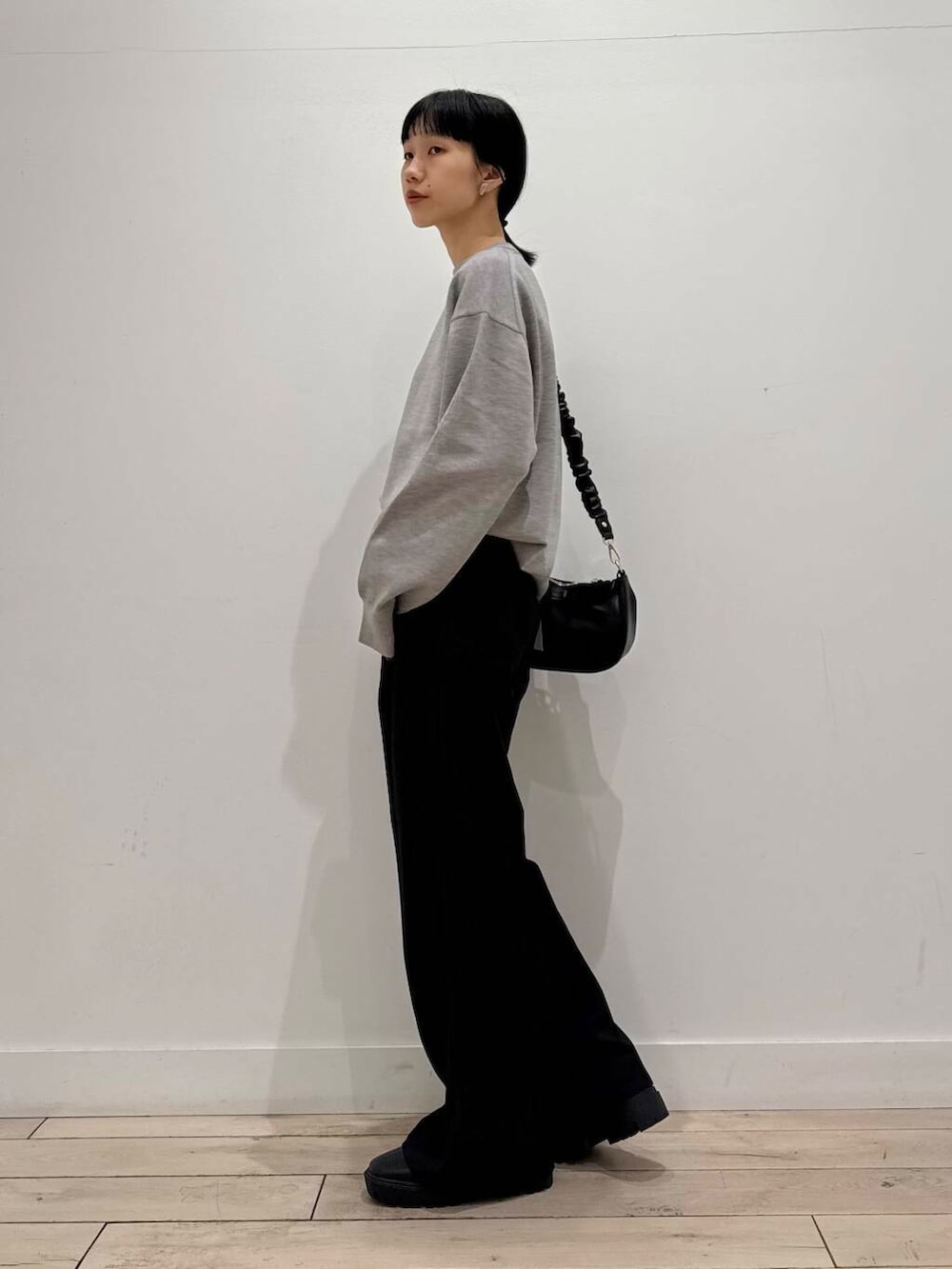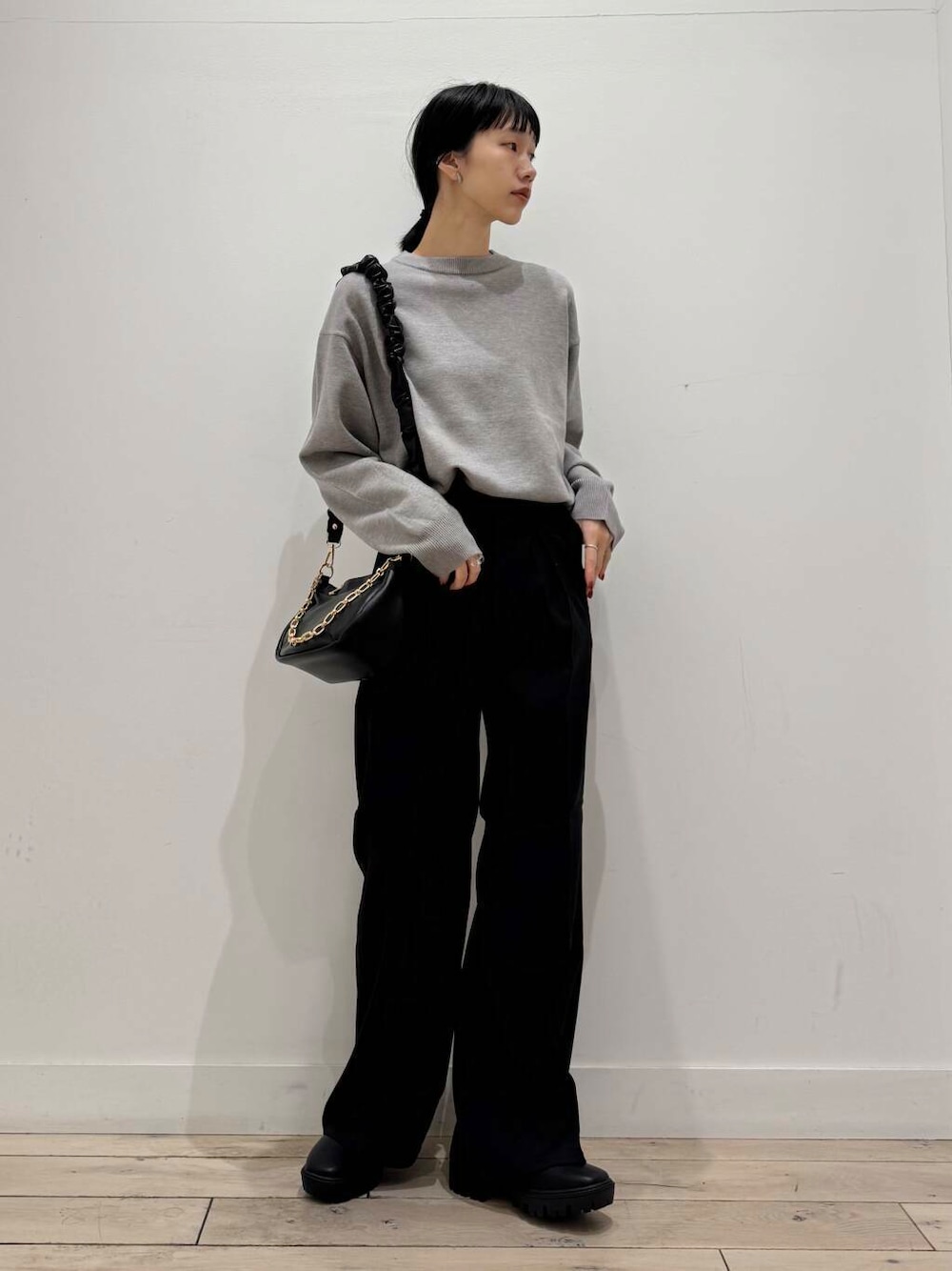 200日ニットのスウェットライクプルオーバー、その名の通りスウェット感覚で使えるのでコーデが組みやすいアイテムです◎分厚くないので前だけイン等もしやすく、に回し力抜群です💯