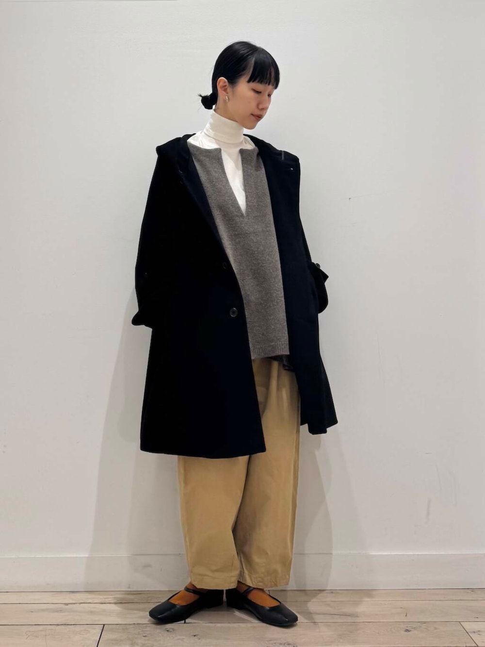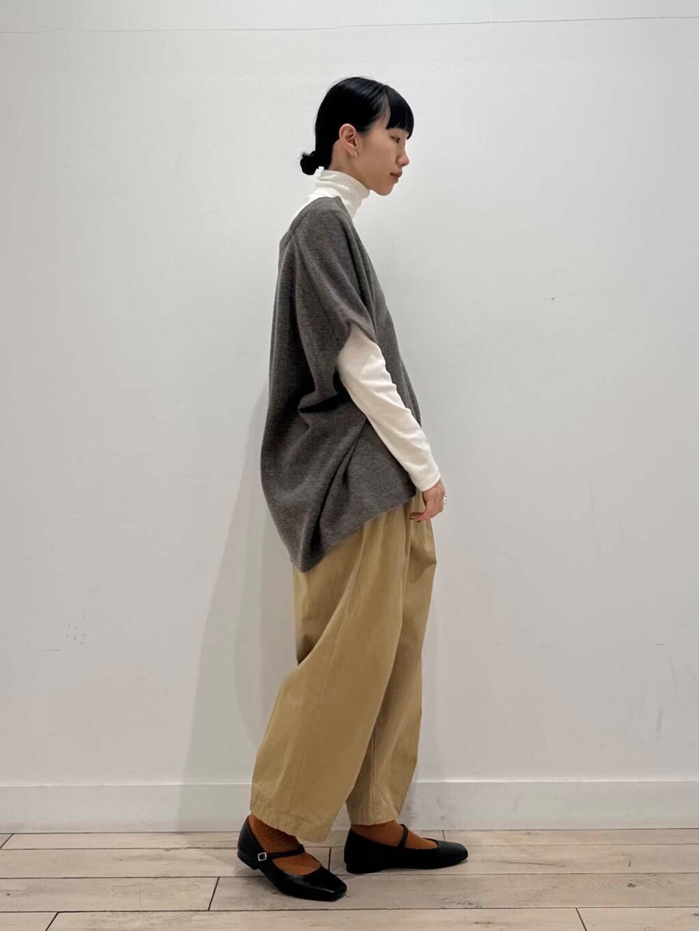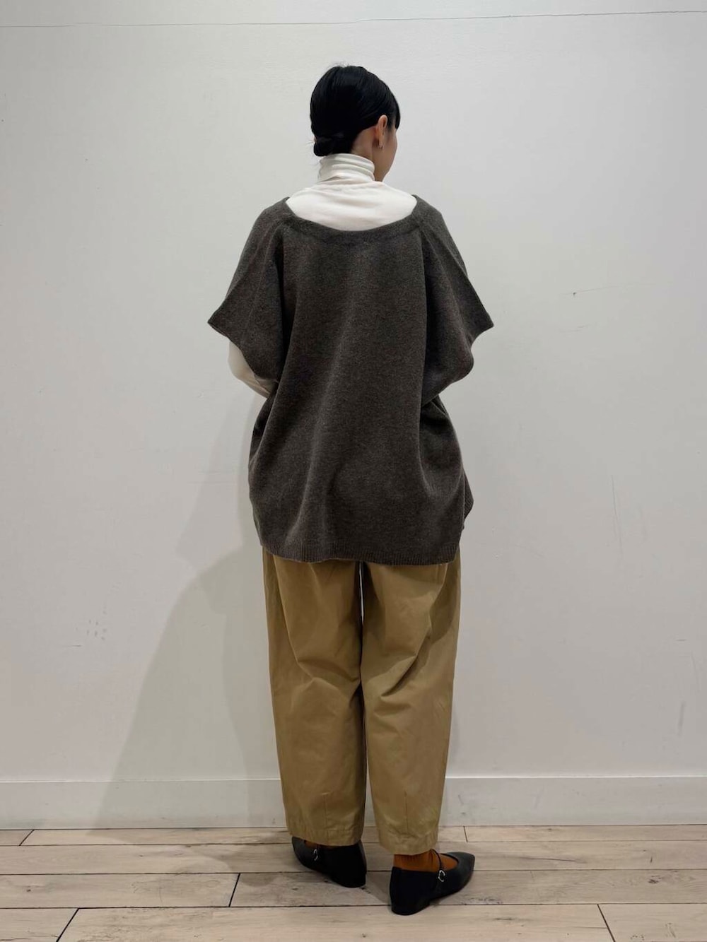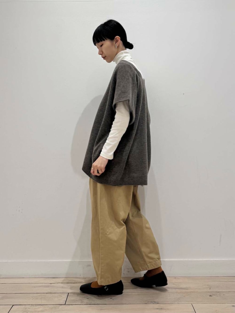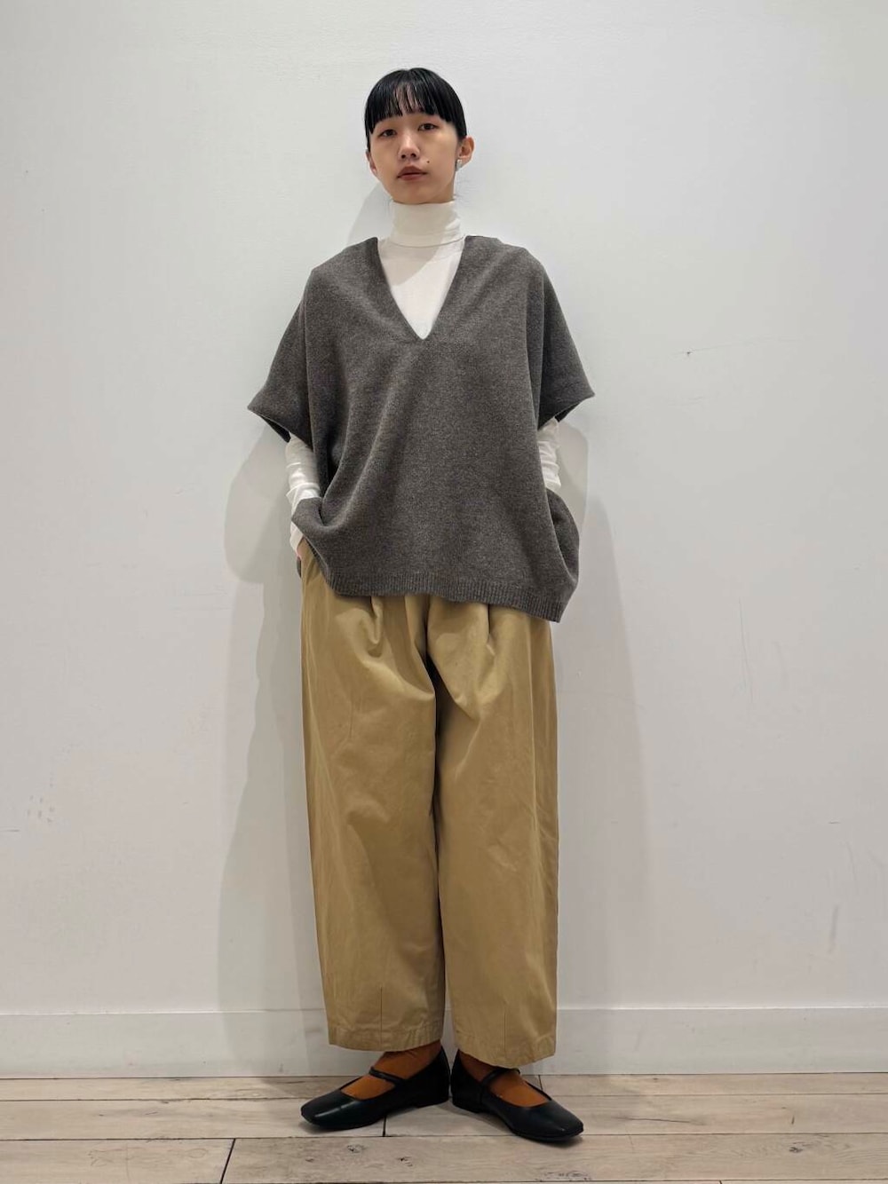 ワイドニットベストはラムウールなので柔らかく着心地抜群です◎ざっくりVネックなので、タートルネックカットソーをいれました!