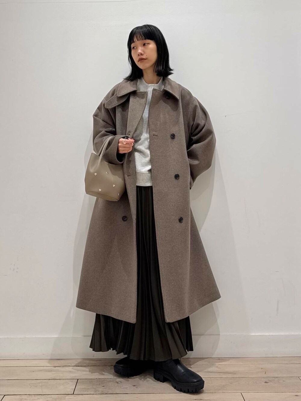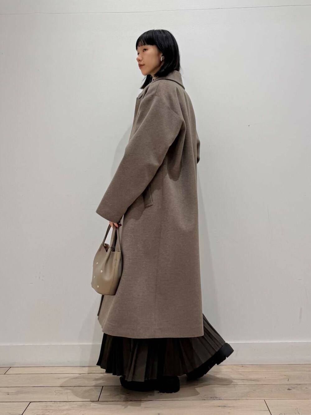 ロングコートの裾から見えるプリーツスカートってかわいくないですか?^ ^縦ラインもできてすらっとした印象にもできます◎