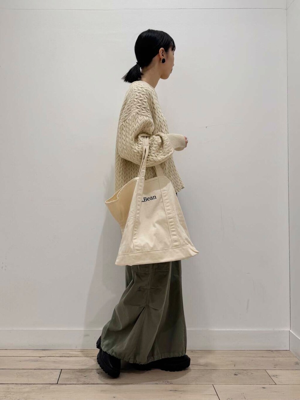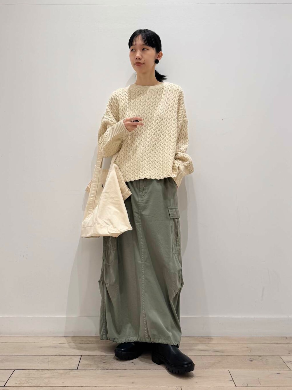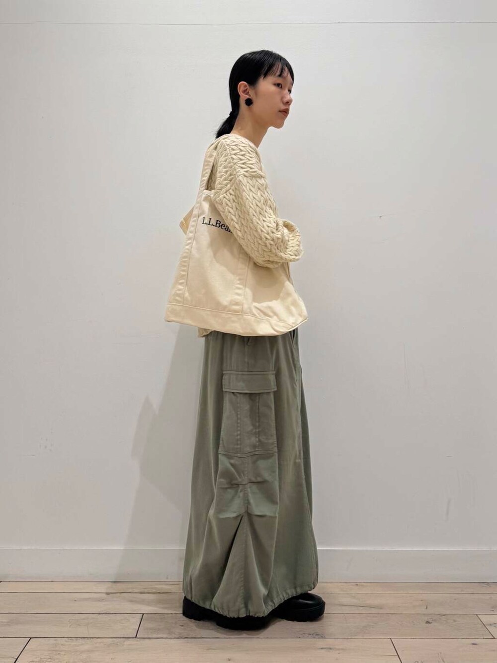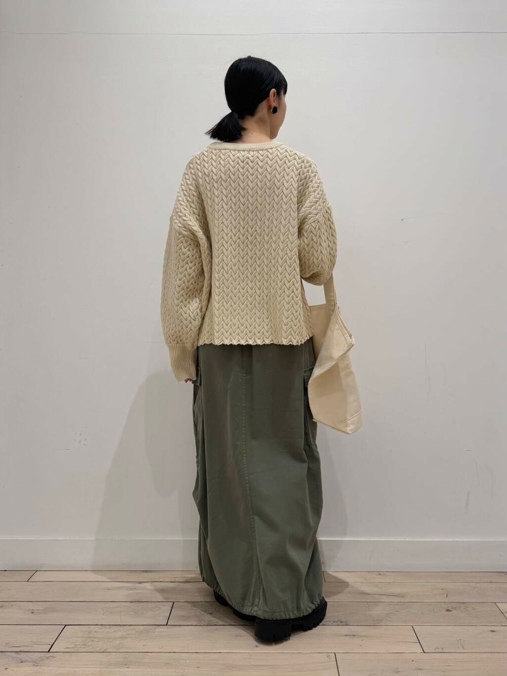 ドロスとスカートは絞って履くとコクーンぽくなってかわいいのでおすすめです!