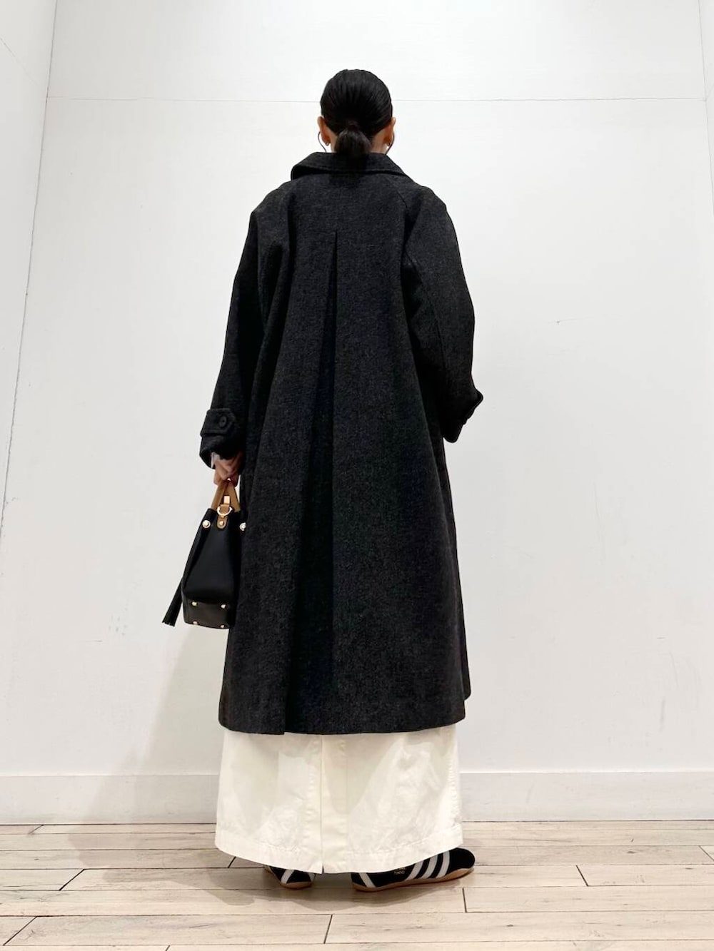 ブラックのアウターは、中に着ているニットの毛がついたりが気になると思いますが、こちらのアウターは気になりづらいのも嬉しいポイントです^ ^