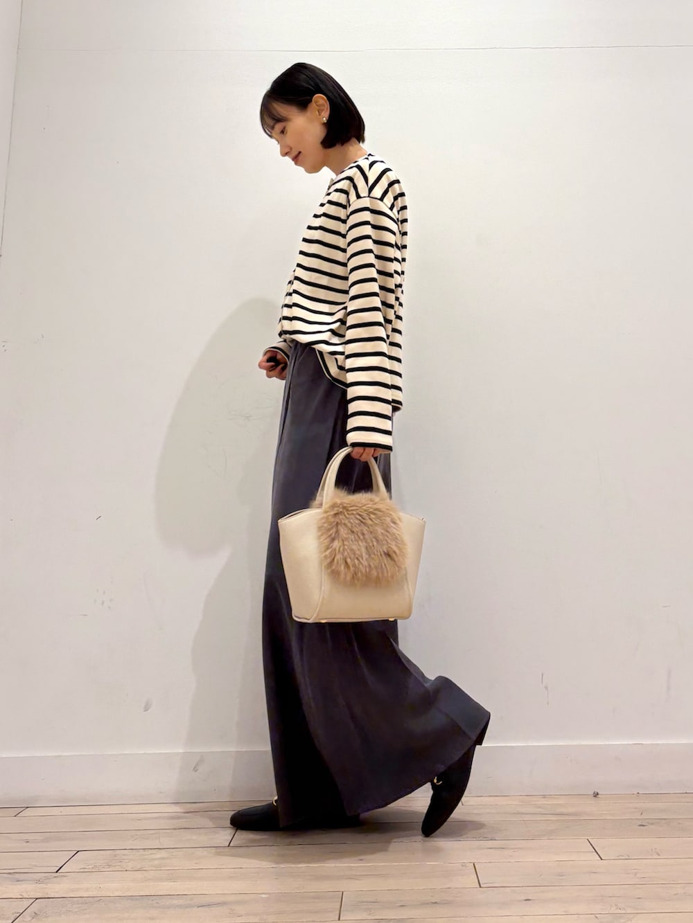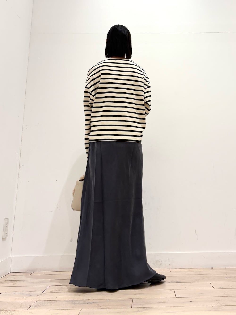 Iラインのスカートですが、身体のラインは拾わないのも嬉しいポイントです👏