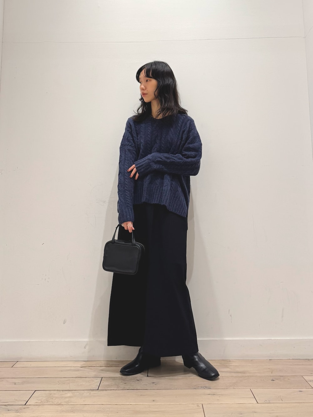 ニットは身幅がありつつスリットが入っているのでスカートとも相性抜群です◎