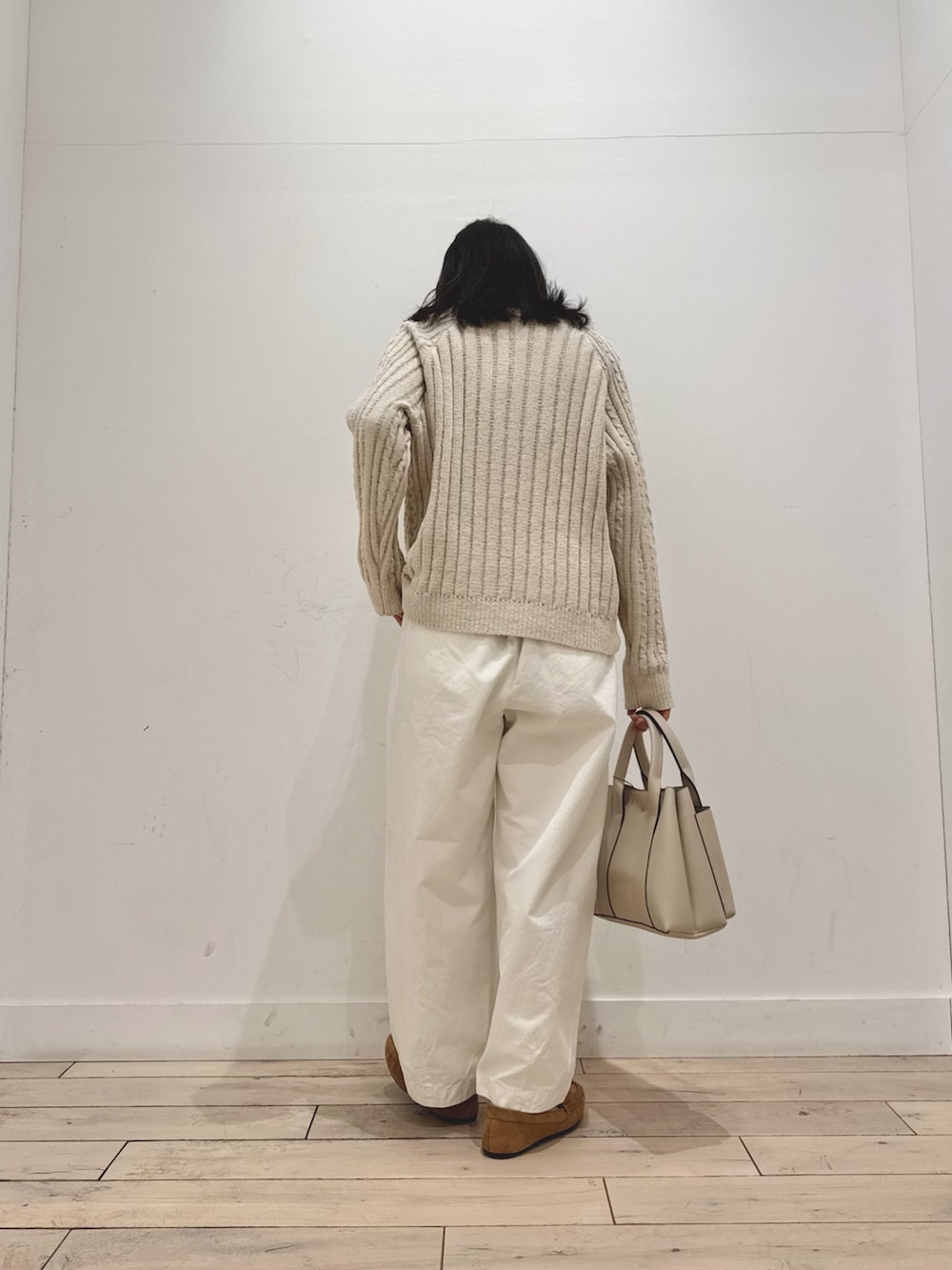 前後で編み目が違うので、表情のあるアイテムです!