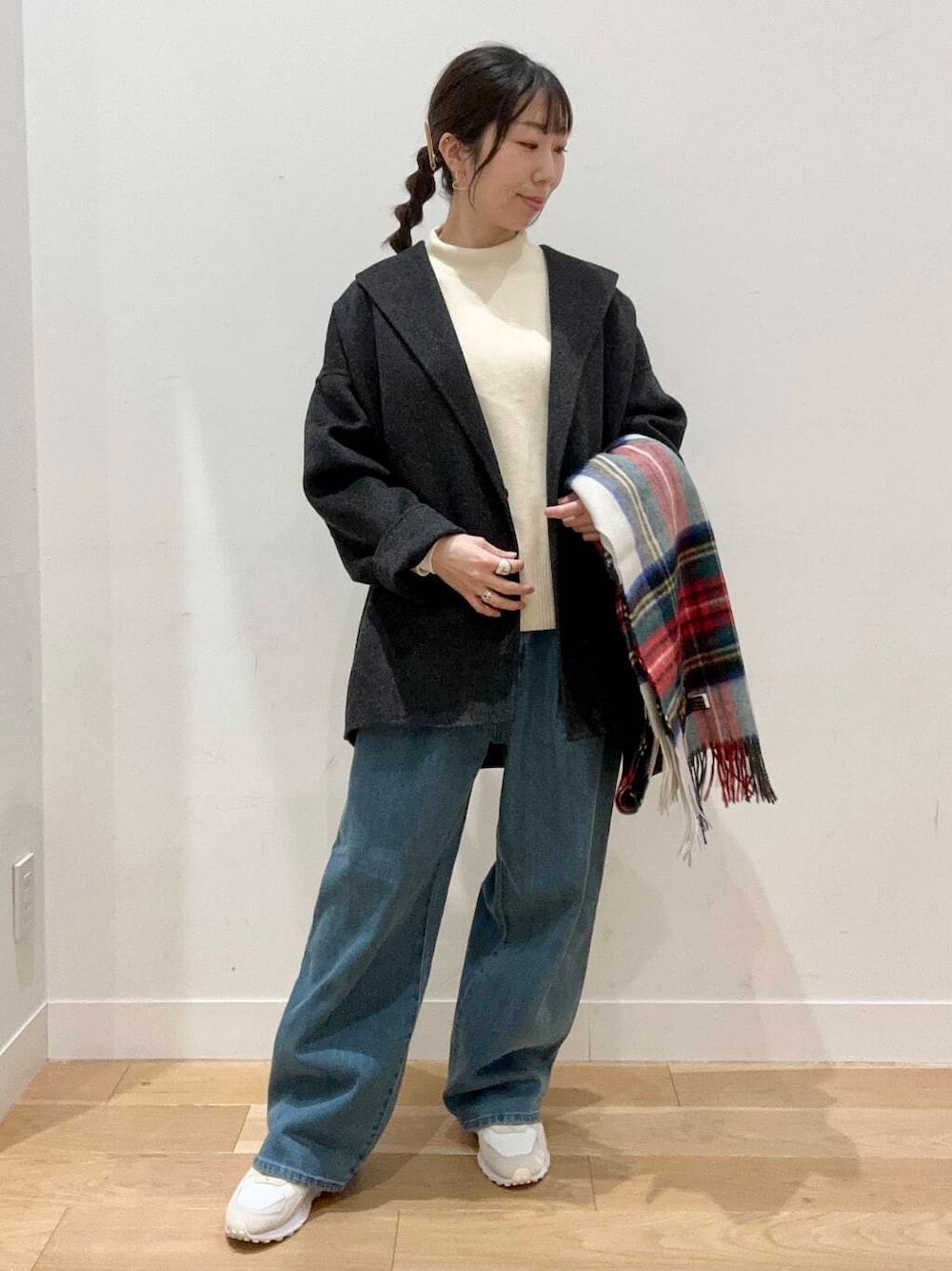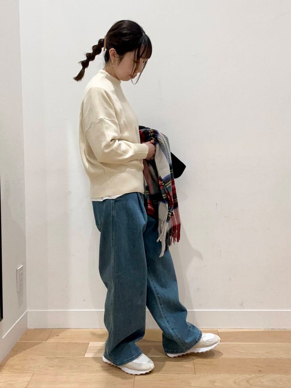 今回は人気のボトルネックニットをカジュアルに着てみました!