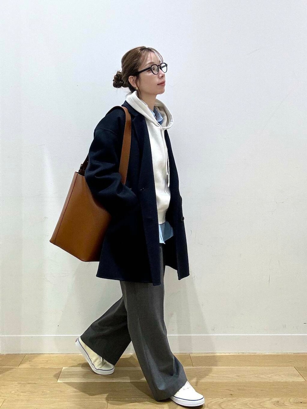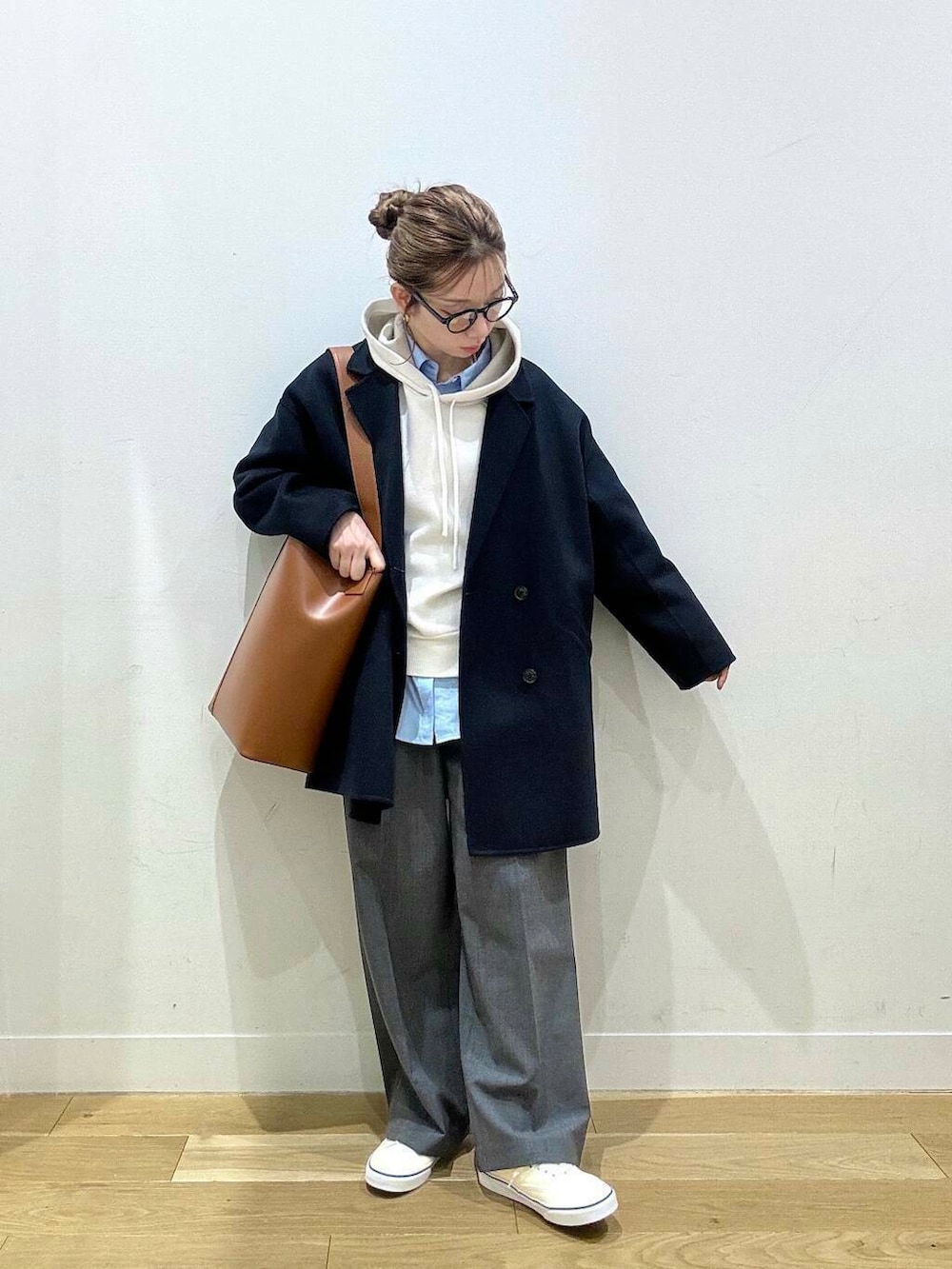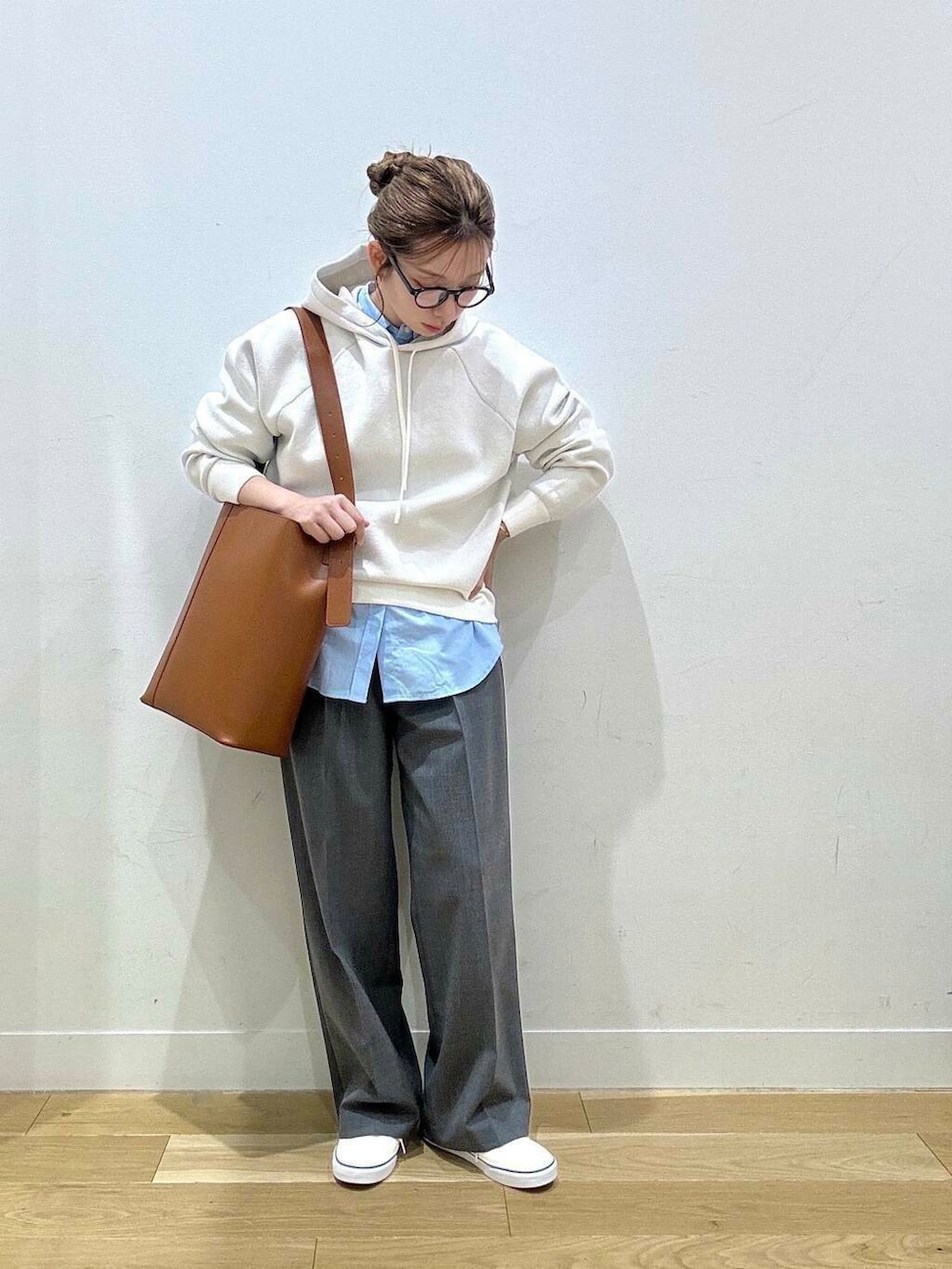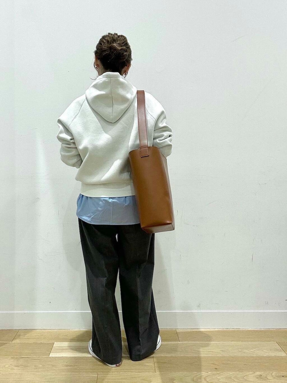 パーカーはカジュアルになりすぎないよう【シャツ+スラックス】できれいめに✨