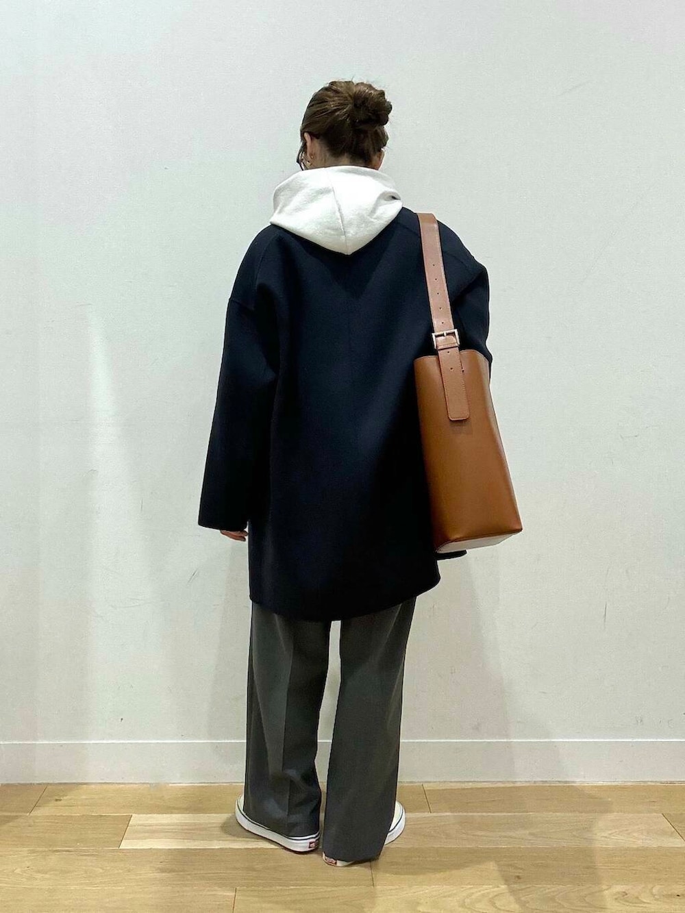 オーバーサイズやカジュアルが好きな方に推しているアウター🙌ジャケットの着丈を伸ばしウール素材にしたような見た目。ゆったりとした身幅、胸元も深く開いているの、パーカー合わせや厚めのインナーに使いやすいです◎