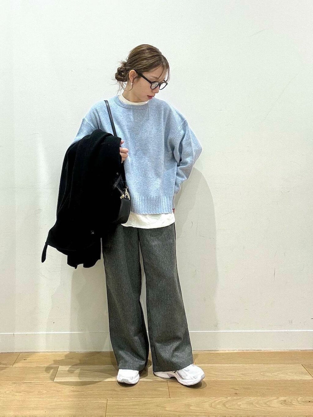 店頭でも人気なカラーニット❄️思わず手に取りたくなる淡いブルーは好印象間違いなし☺️