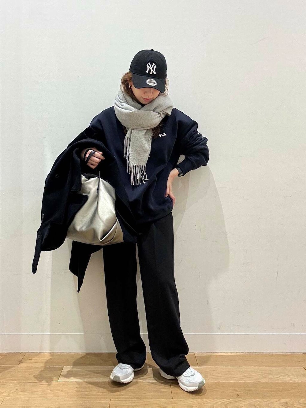 トップスには腰回りをカバーできるあえてのビッグサイズを🙌裏起毛で一枚でもあたたかく、さりげない🦊ワッペンが◎
