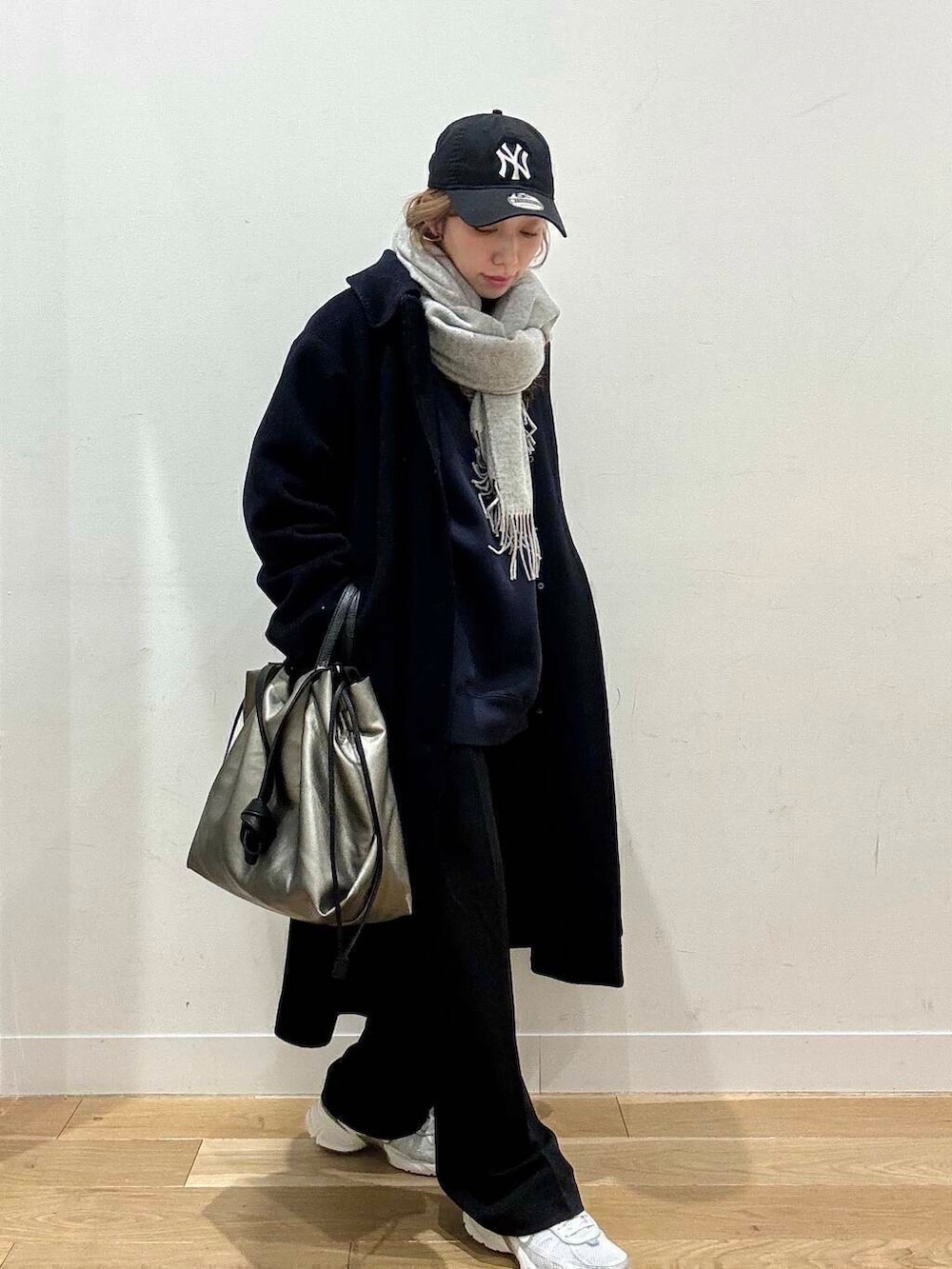全体的にダークトーンなので、アクセントにシルバー系バッグとグレーのストールをチョイスして小物で明るさを足しています✔︎