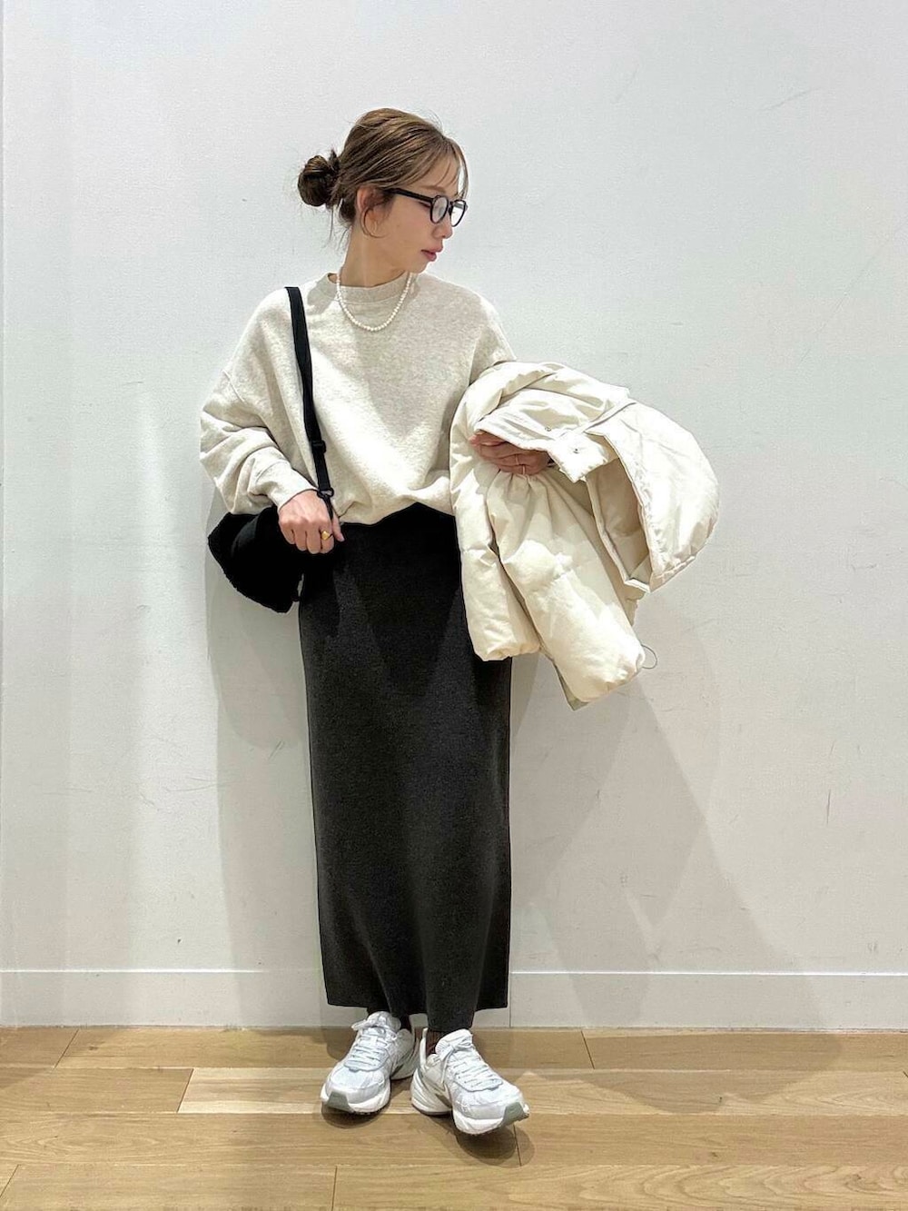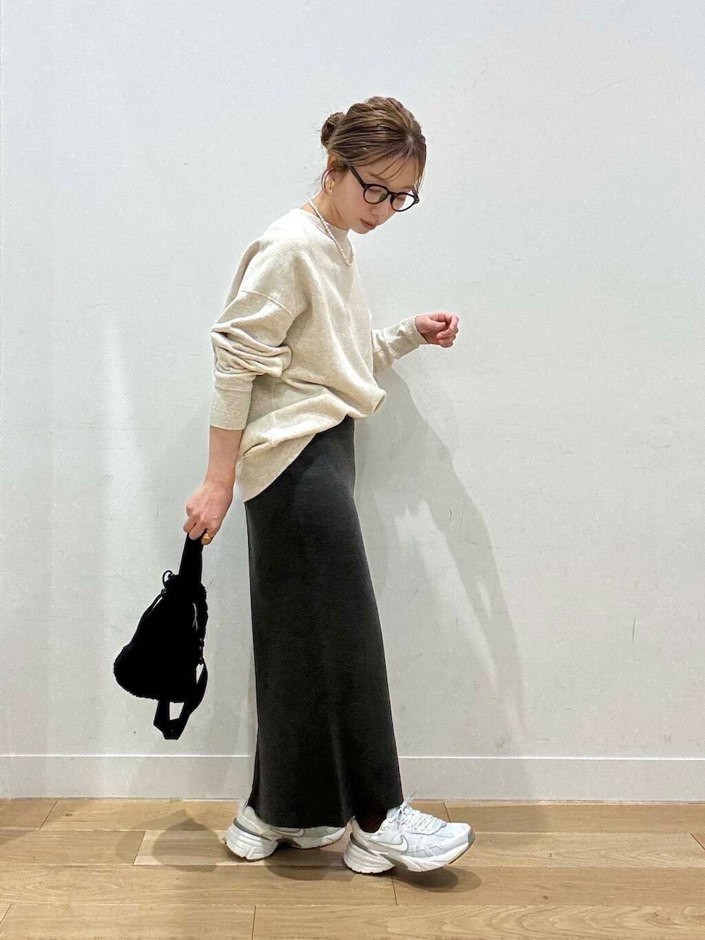ニットスカート×パールネックレス合わせで大人の雰囲気に💍