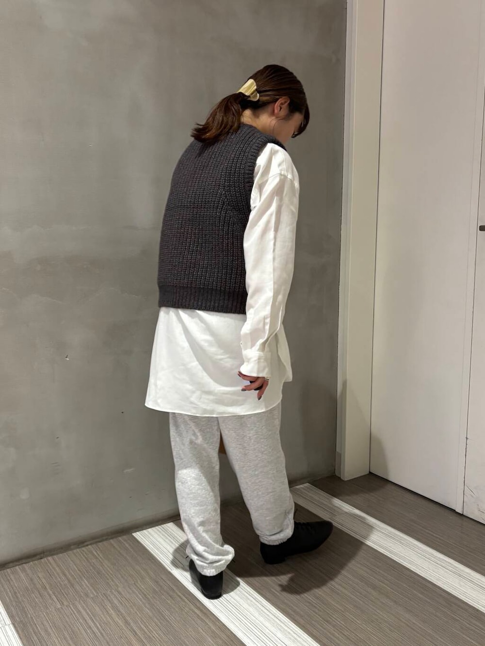 個人的にスウェットパンツはシャツやカチッとした雰囲気のシューズと合わせるのが好きです