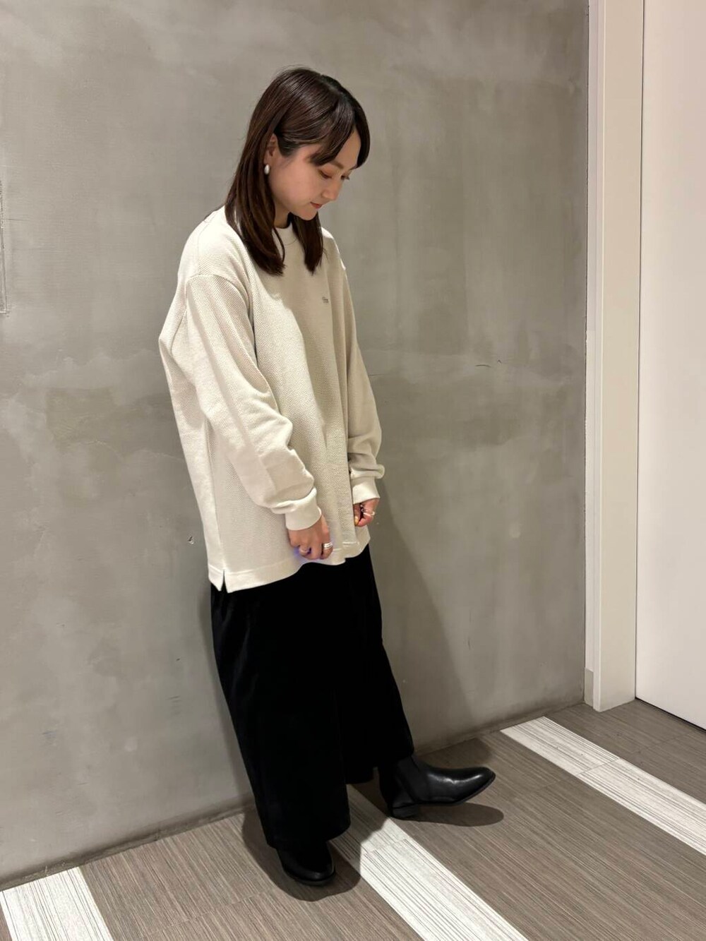 今の時期に1枚で着やすく、気温が下がってくるとアウターやジャケットとの合わせもお楽しみいただけます◎