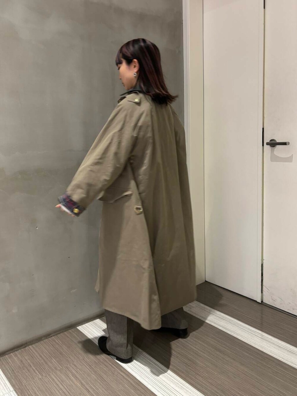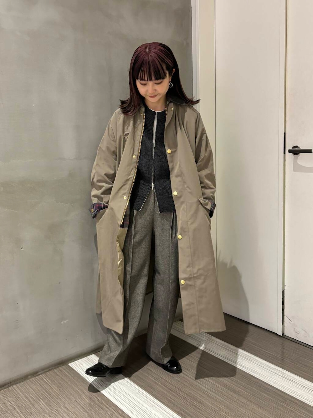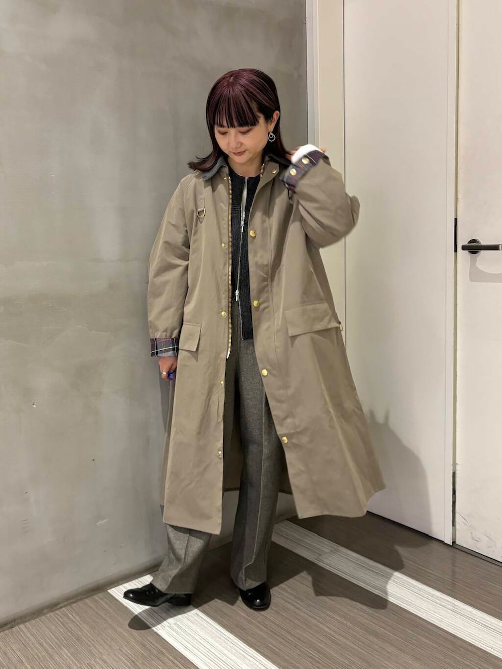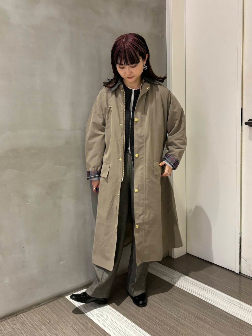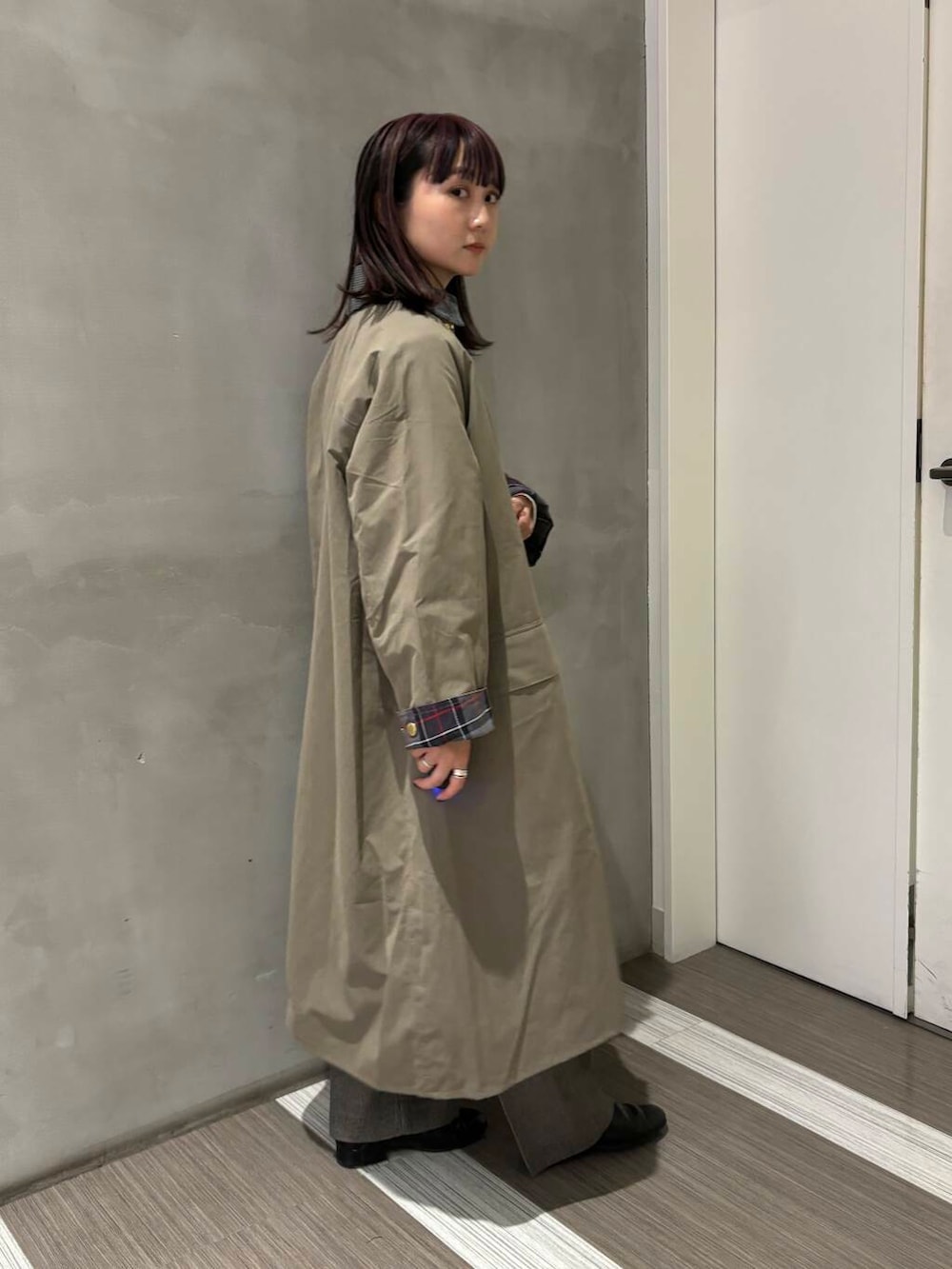 折り返した裏地のチェック柄がポイントになるので中はシンプルにまとめました!
