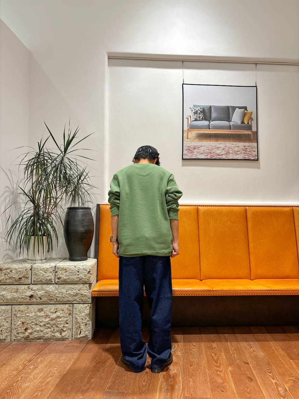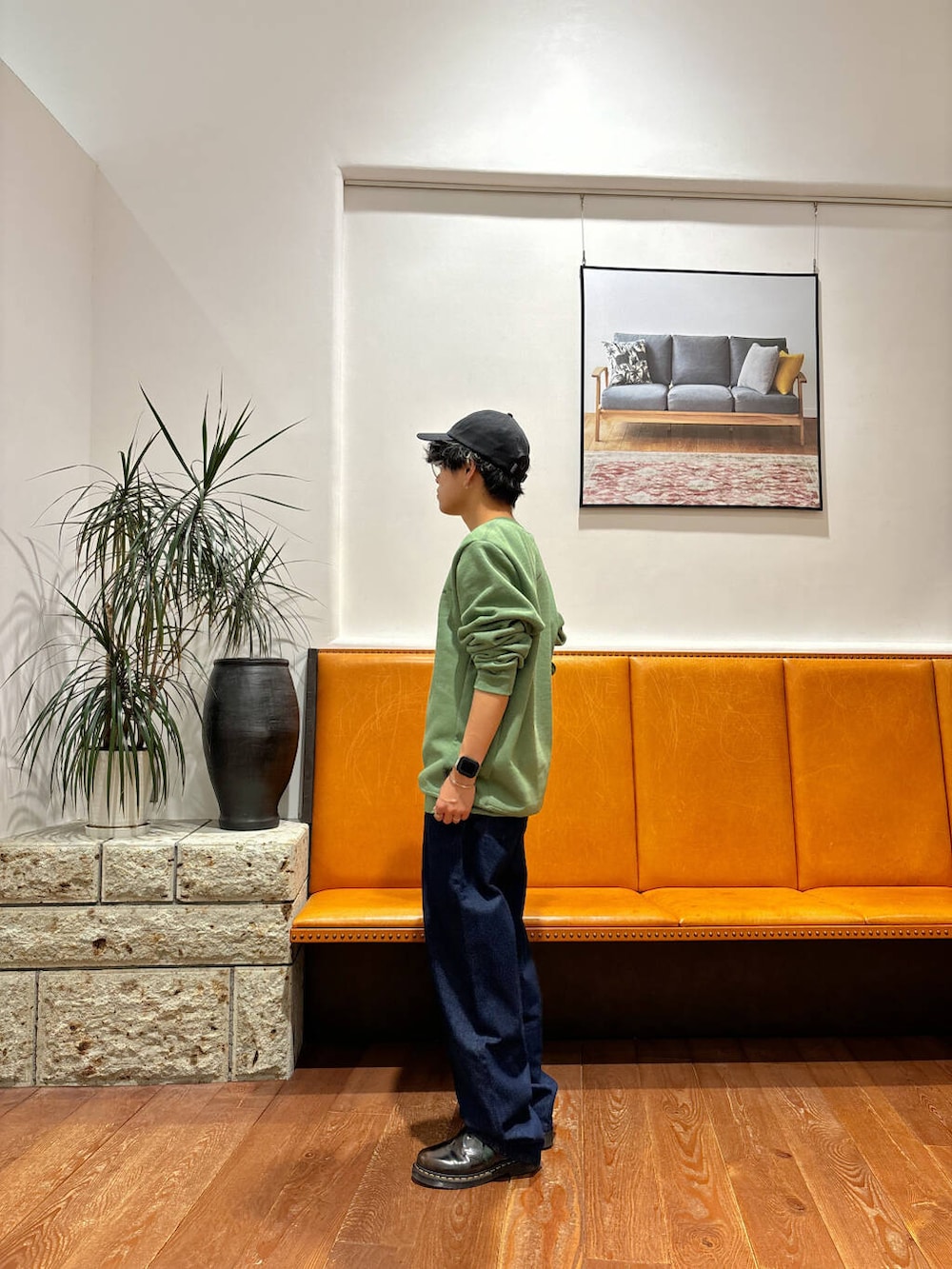 ボトムスは定番のデニム合わせで、キャップでスポーティーな感じでまとめてみました。
