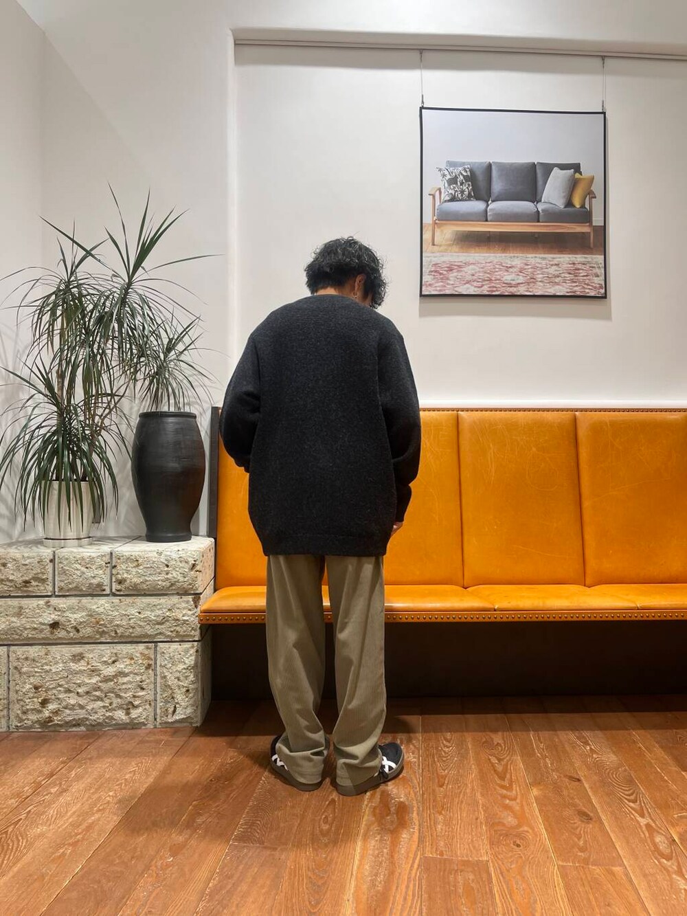 ハミルトンウールのカーディガンに、コーデュロイパンツを合わせた温かみのあるスタイリングです。