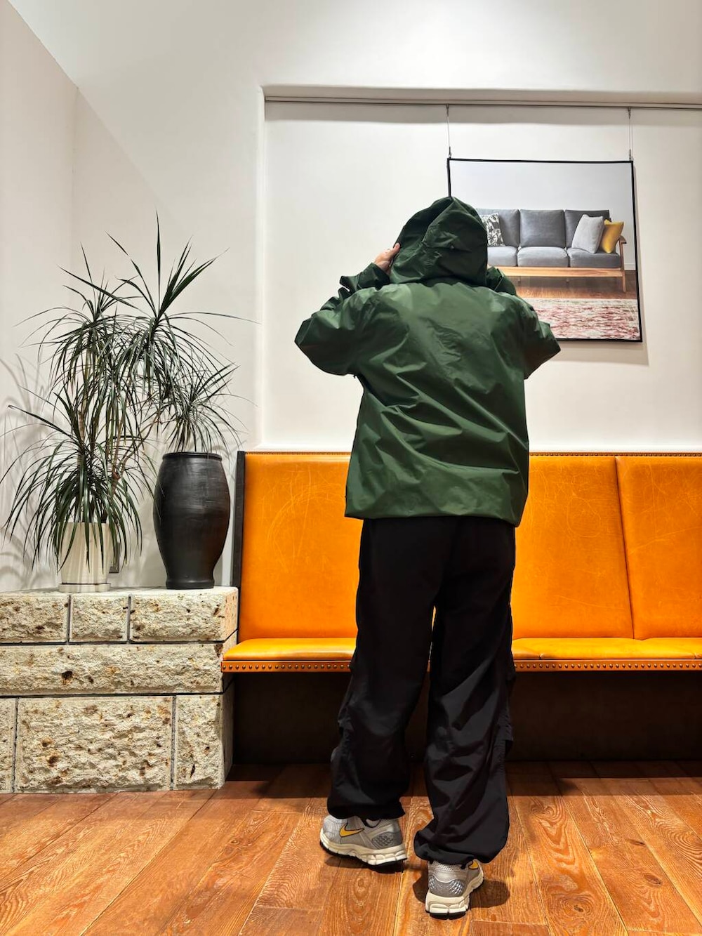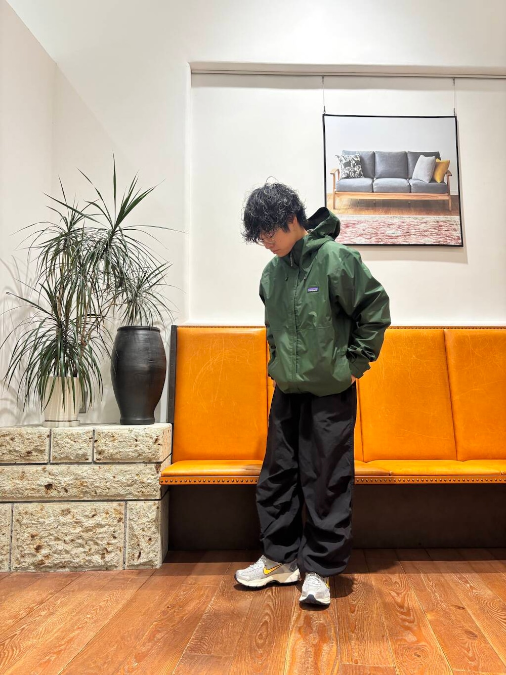 Patagoniaのレインジャケットをメインにスタイリングしました。