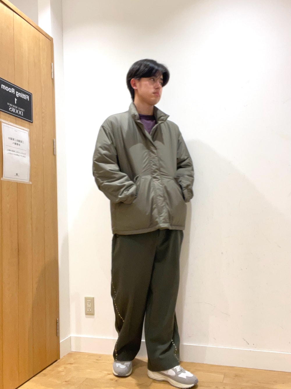 パープルのスウェット、差し色として大活躍です。
