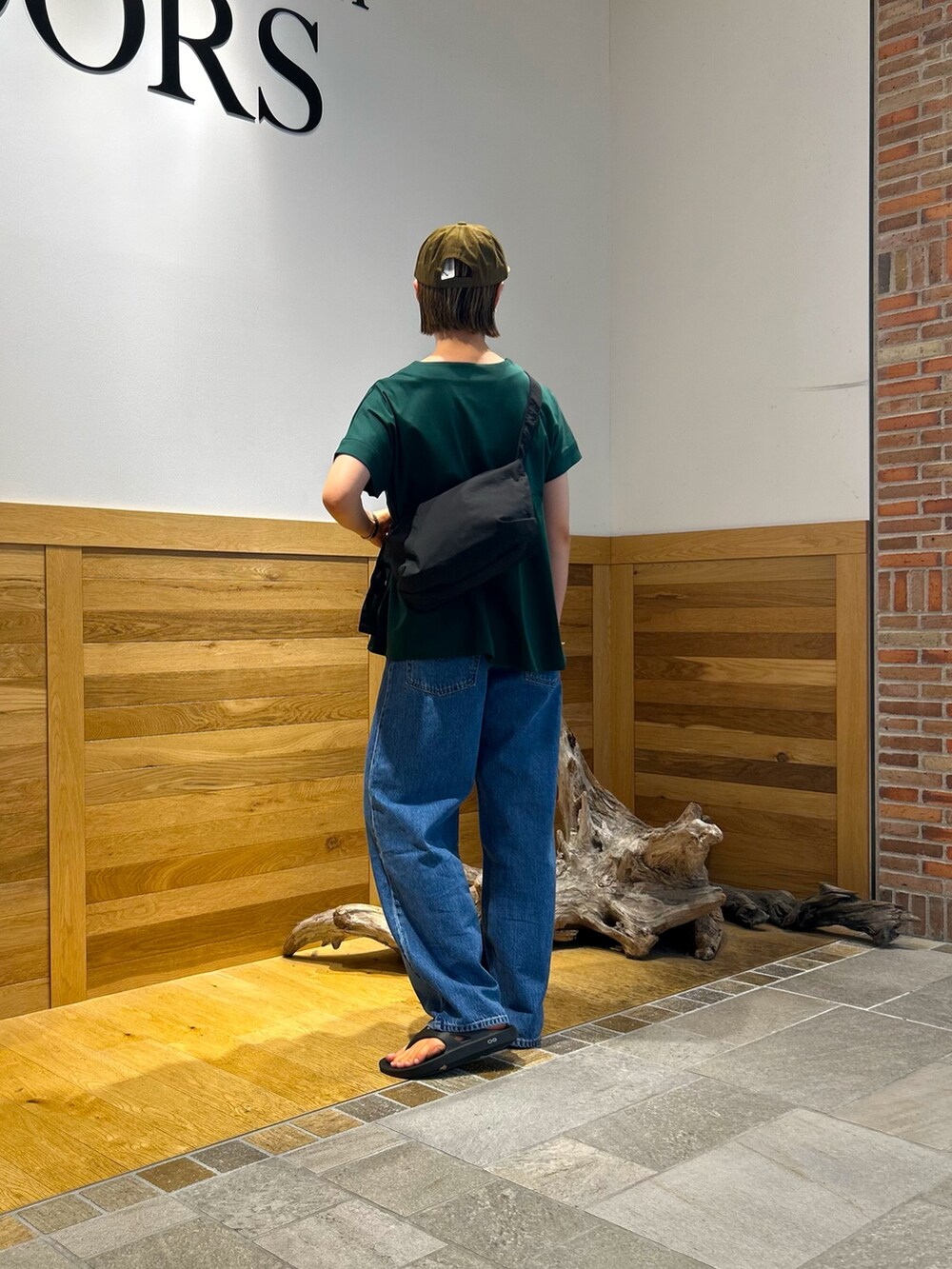 キレイめトップスをカジュアルに落とし込んだラクチンコーデ。