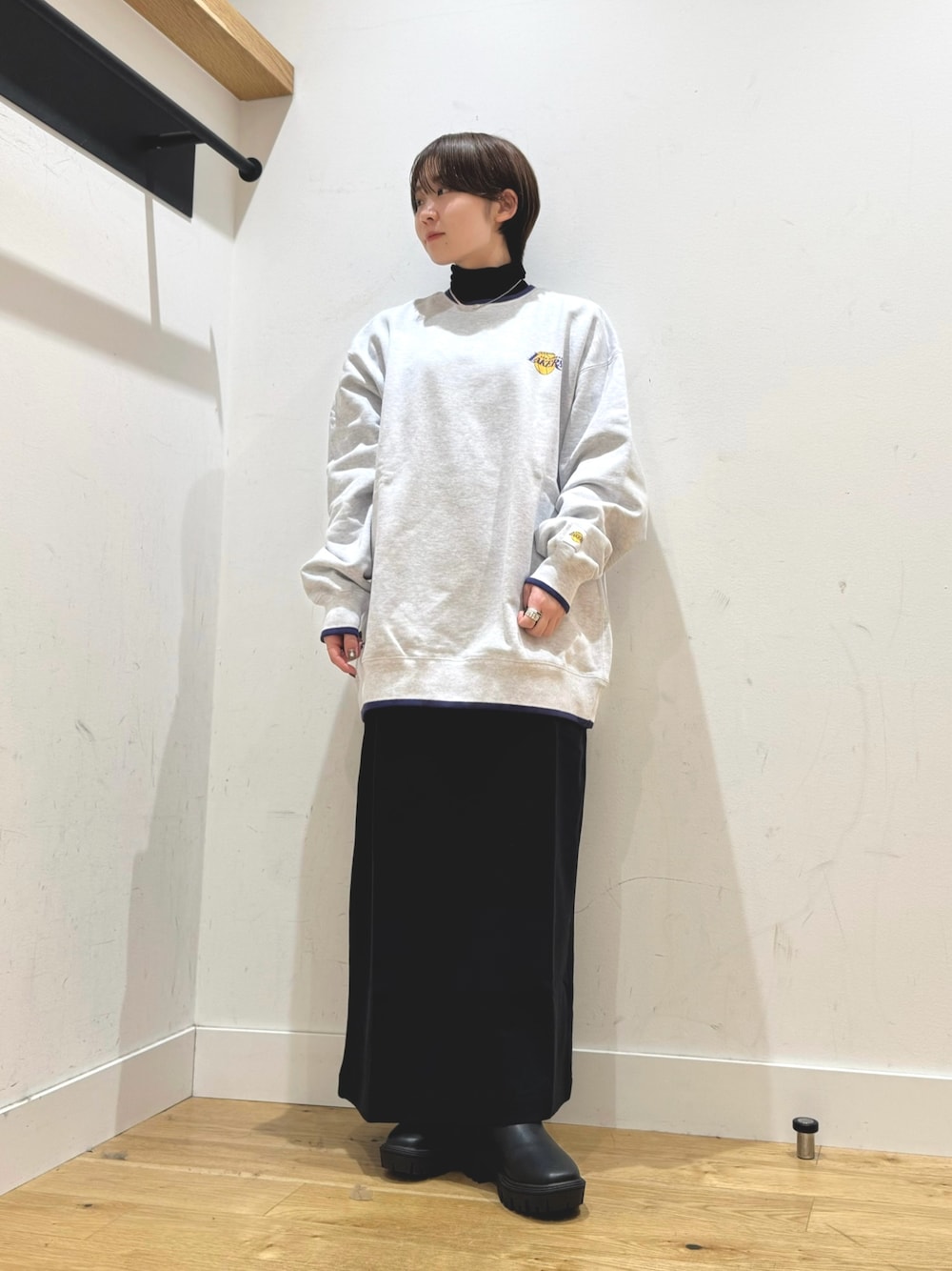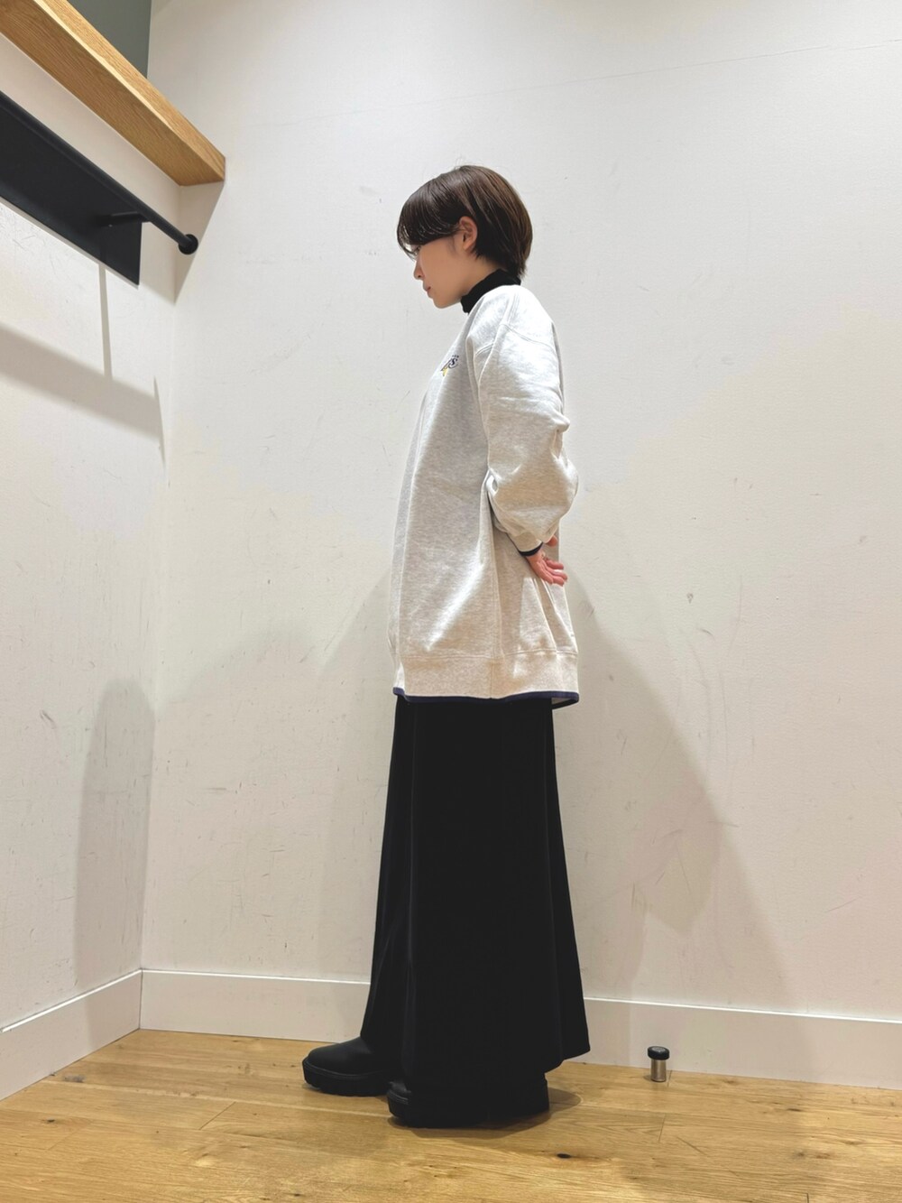 オーバーめのトップスは、収まりの良いボトムスとの組み合わせがバランスも取りやすくオススメです。