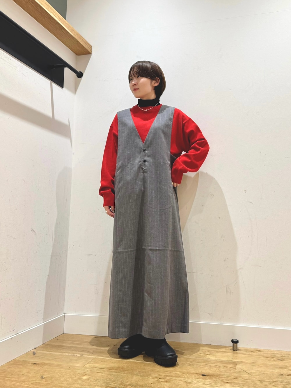 ジャンパースカートはさりげなくストライプが入っていて可愛いです。