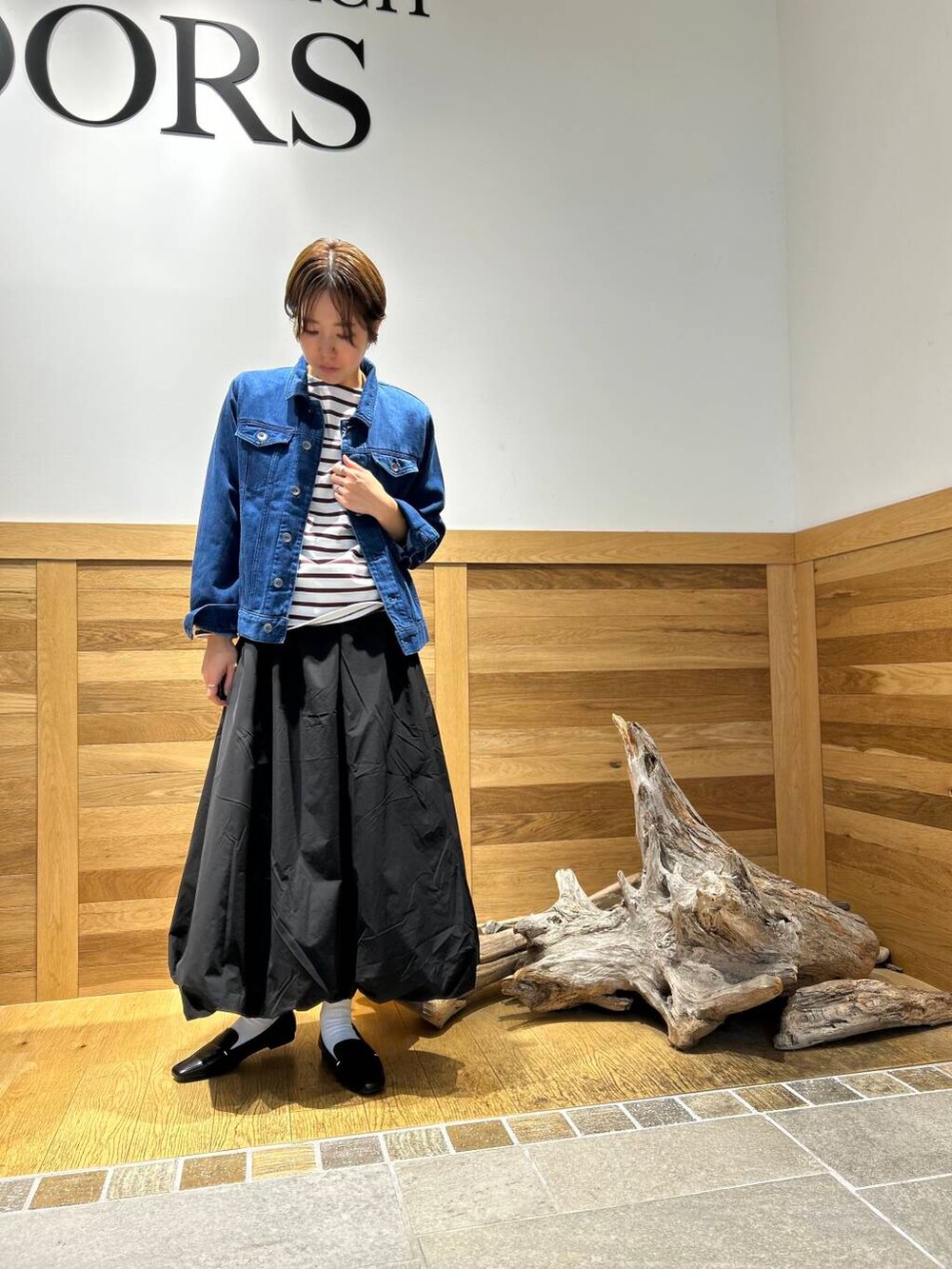 バルーンスカートはこの秋注目のアイテム。定番のデニムジャケットと合わせると取り入れやすいです。