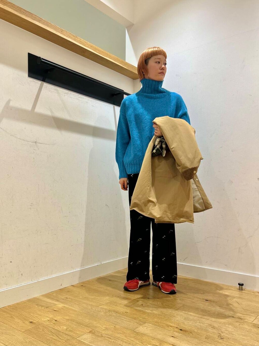 コートとニットの冬コーデ。
