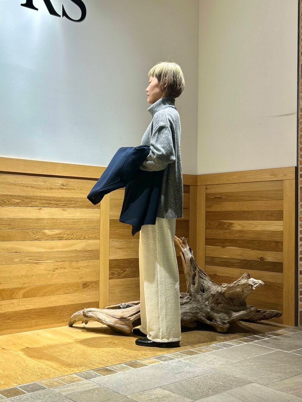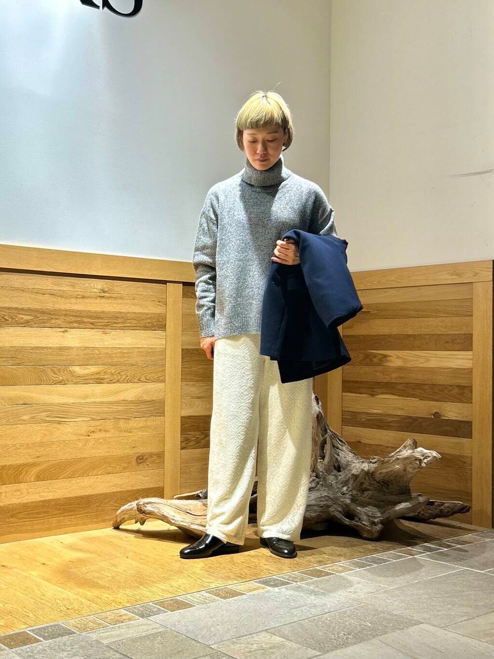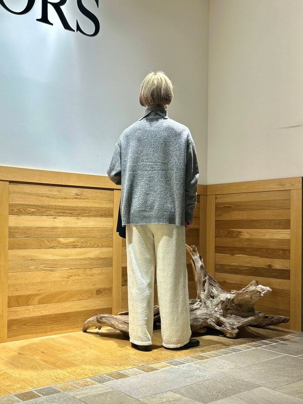 レースパンツのニットコーデ。
