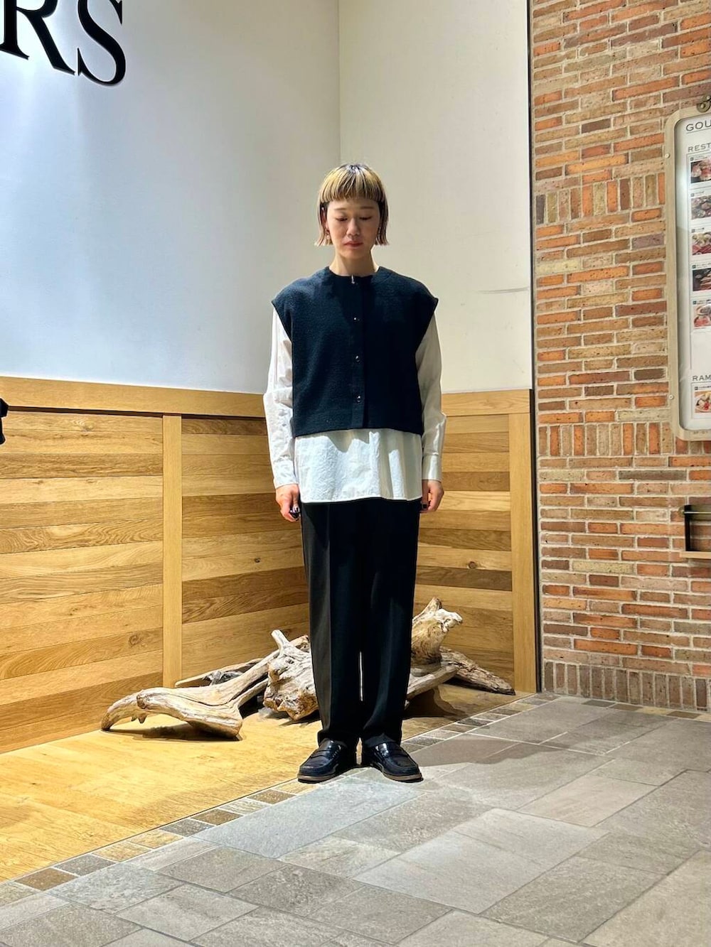 ウールベストとダウンのあったかコーデ。