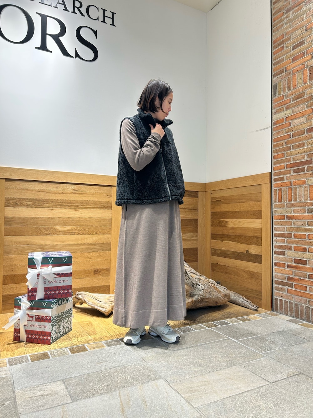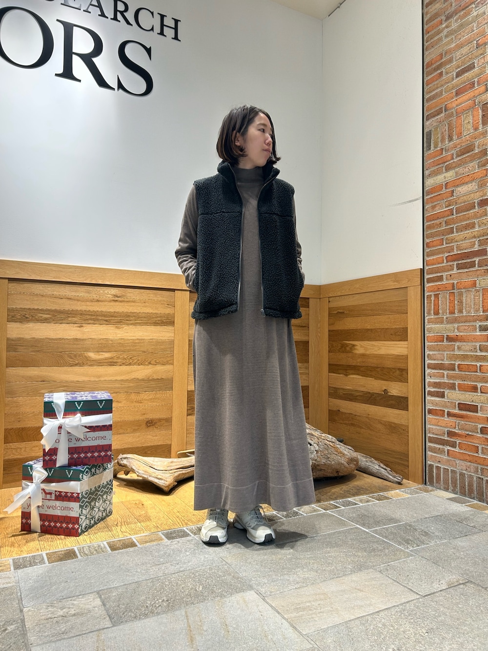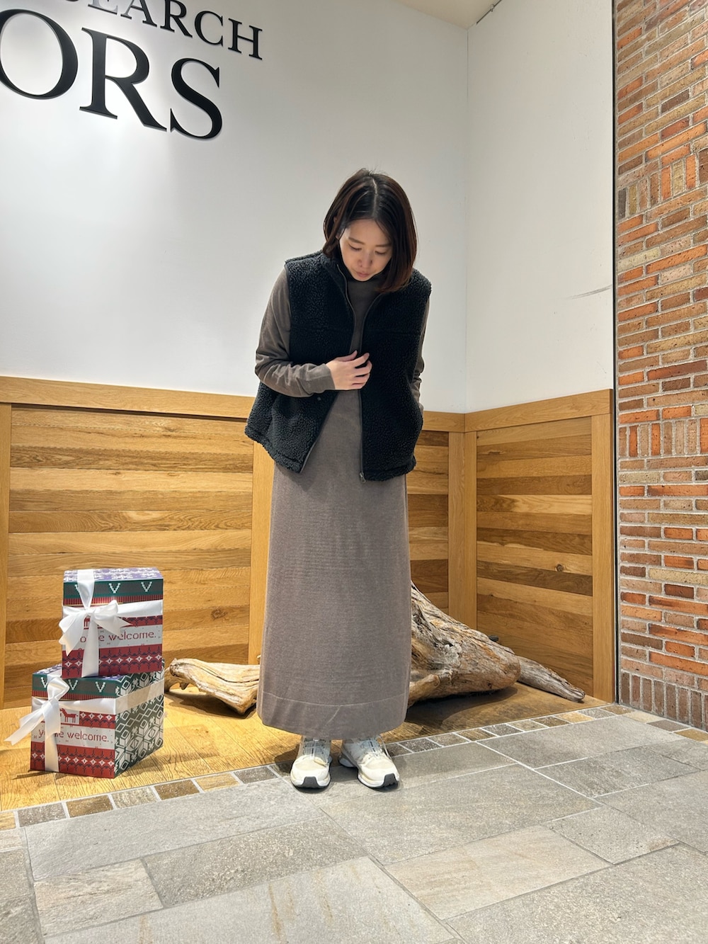 秋から冬にかけて、まだまだ大活躍してくれるボアベスト。ワンピースと相性バッチリです!冬はアウターのインナーにもお使いいただけます。