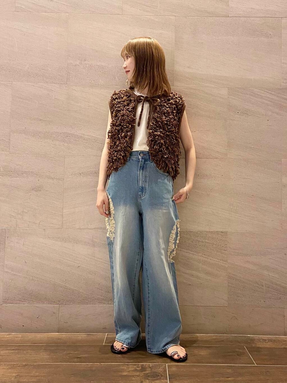 新作のベスト、ノースリーブ合わせがスッキリ見えておすすめです◎