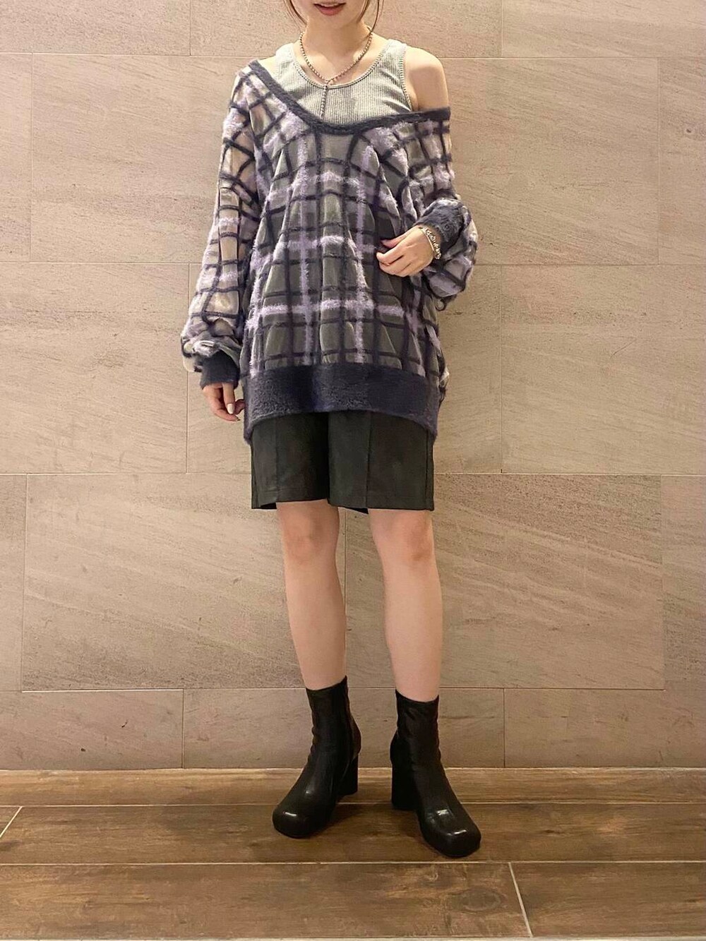 店頭でも大人気のチェックニット着てみました🧶