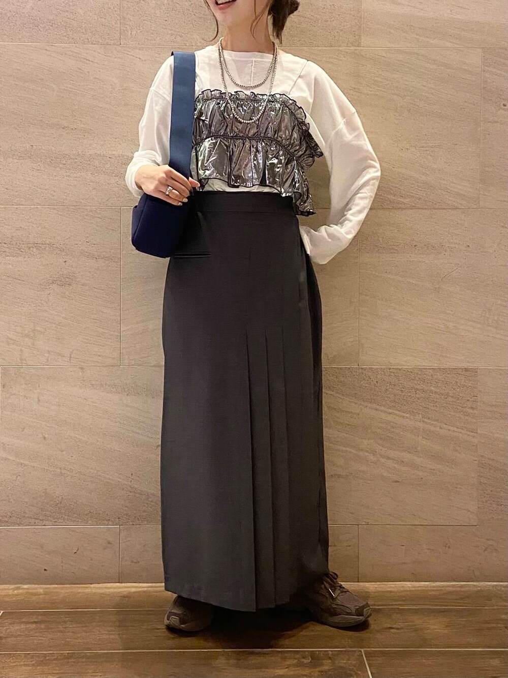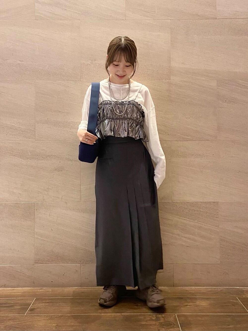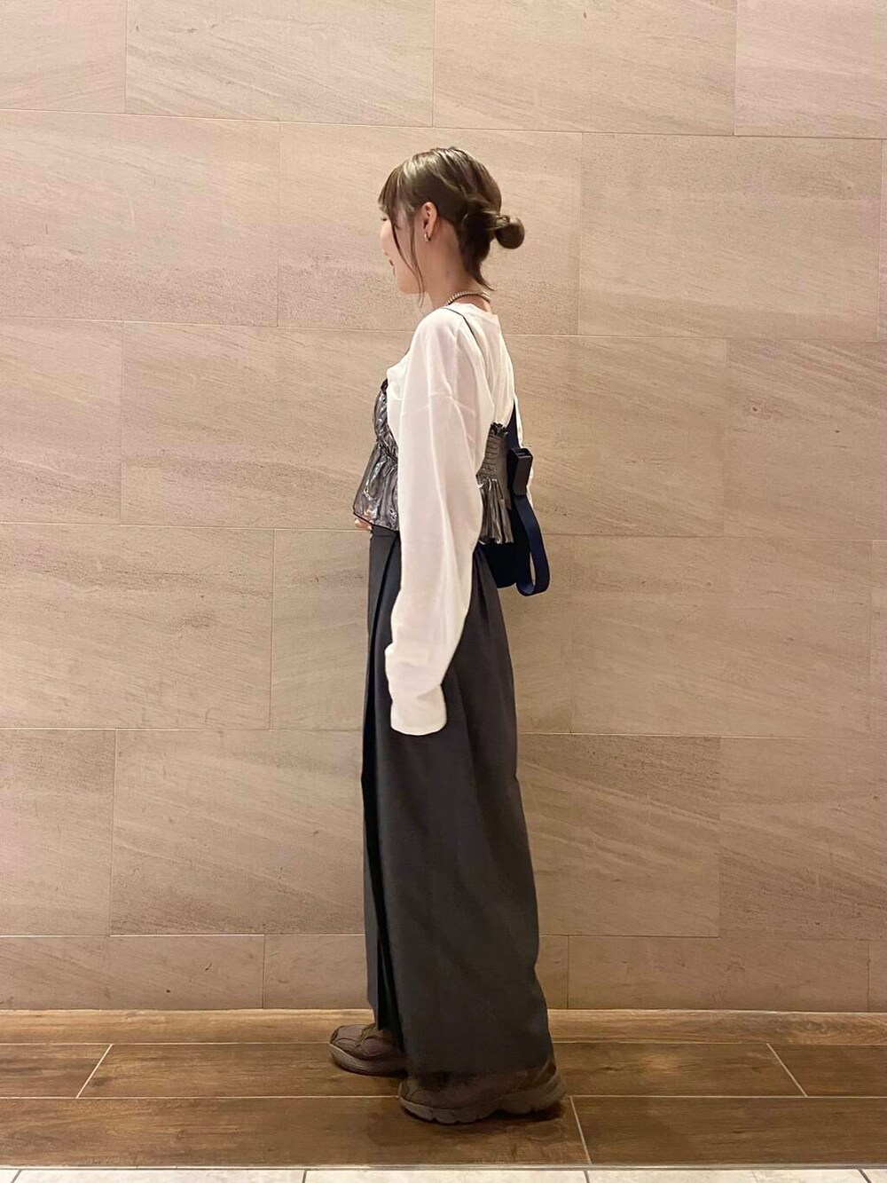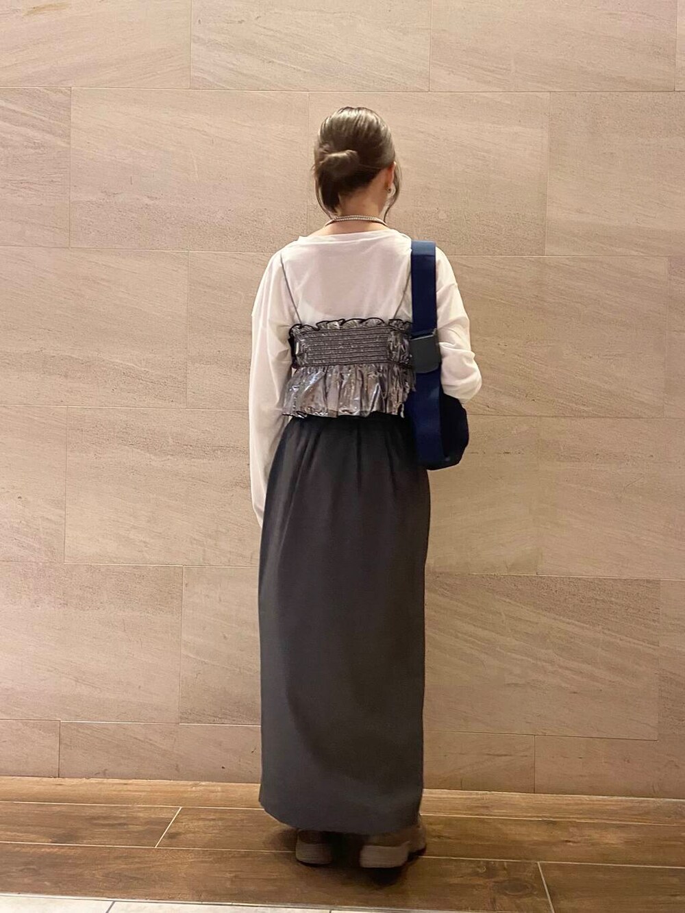 リアルバイしたTシャツ、スカートのカジュアルな合わせにビスチェ追加で華やかさを出しました✨