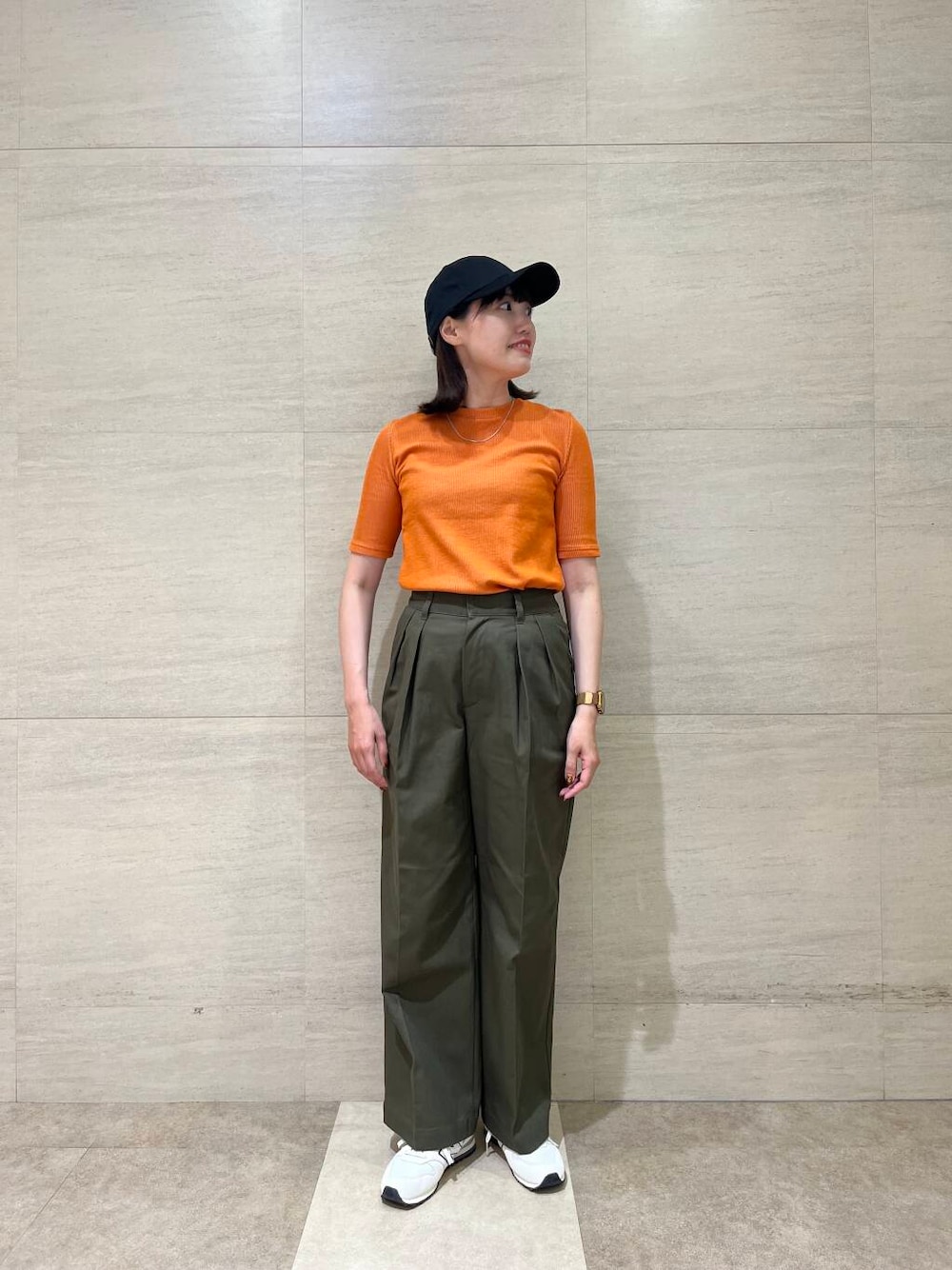 チノパンツはワイドになっていますが、センタープレスが入っているので広がりすぎず、足のラインを綺麗に見せてくれます!