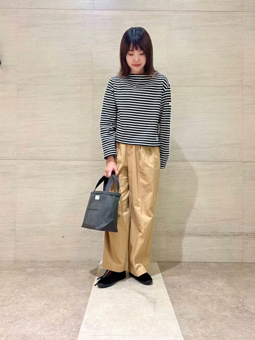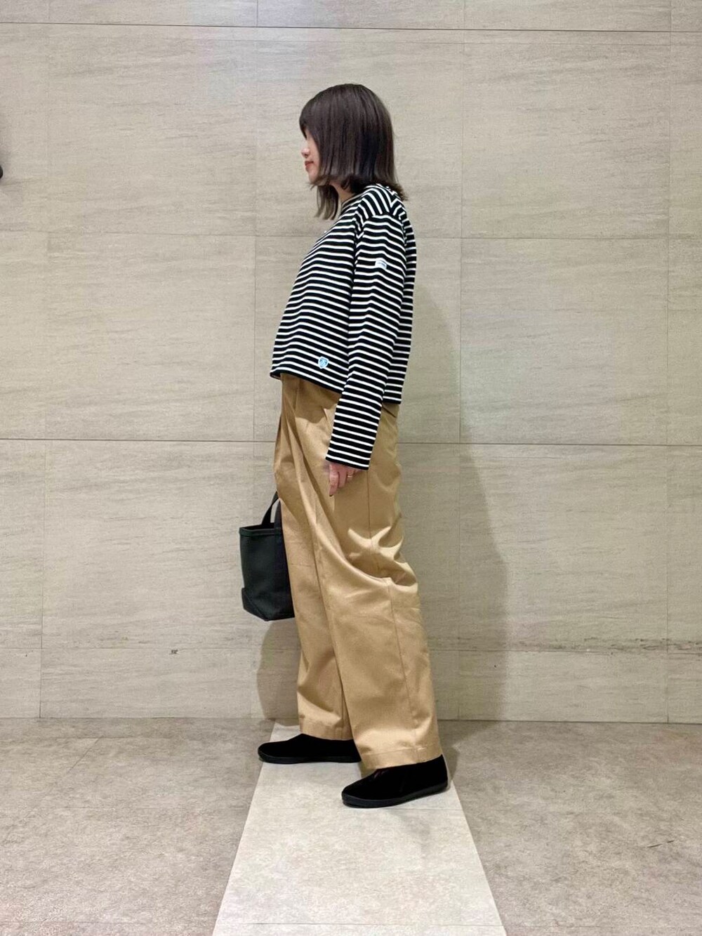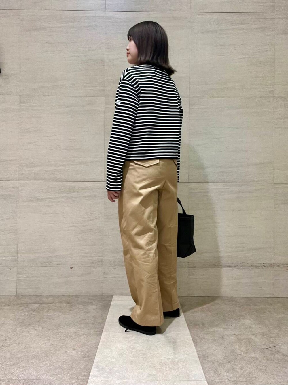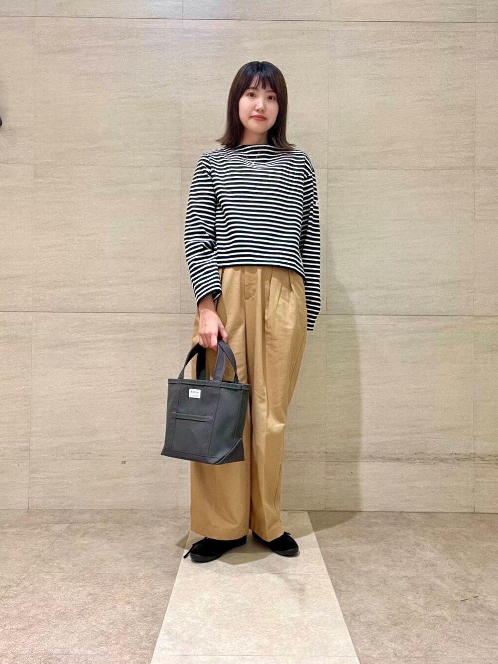 トップスは丈が少し短く、ハイウエストパンツやボリュームのあるスカートと合わせるのがオススメです◎