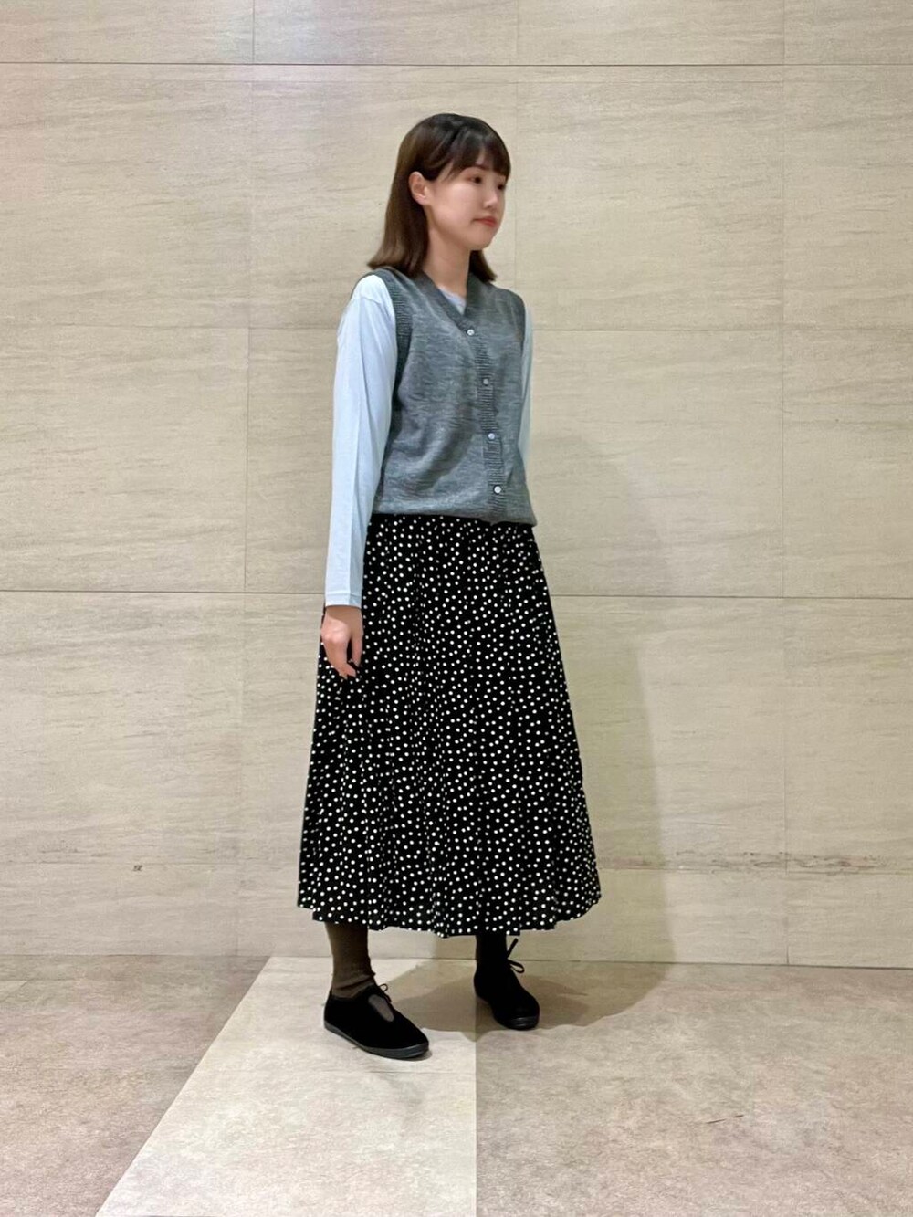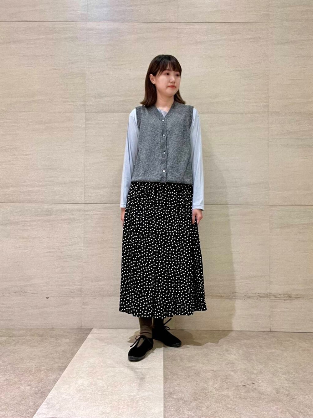 ニットベストは見た目以上に軽く、暑さが続く今でも使っていただけます◎