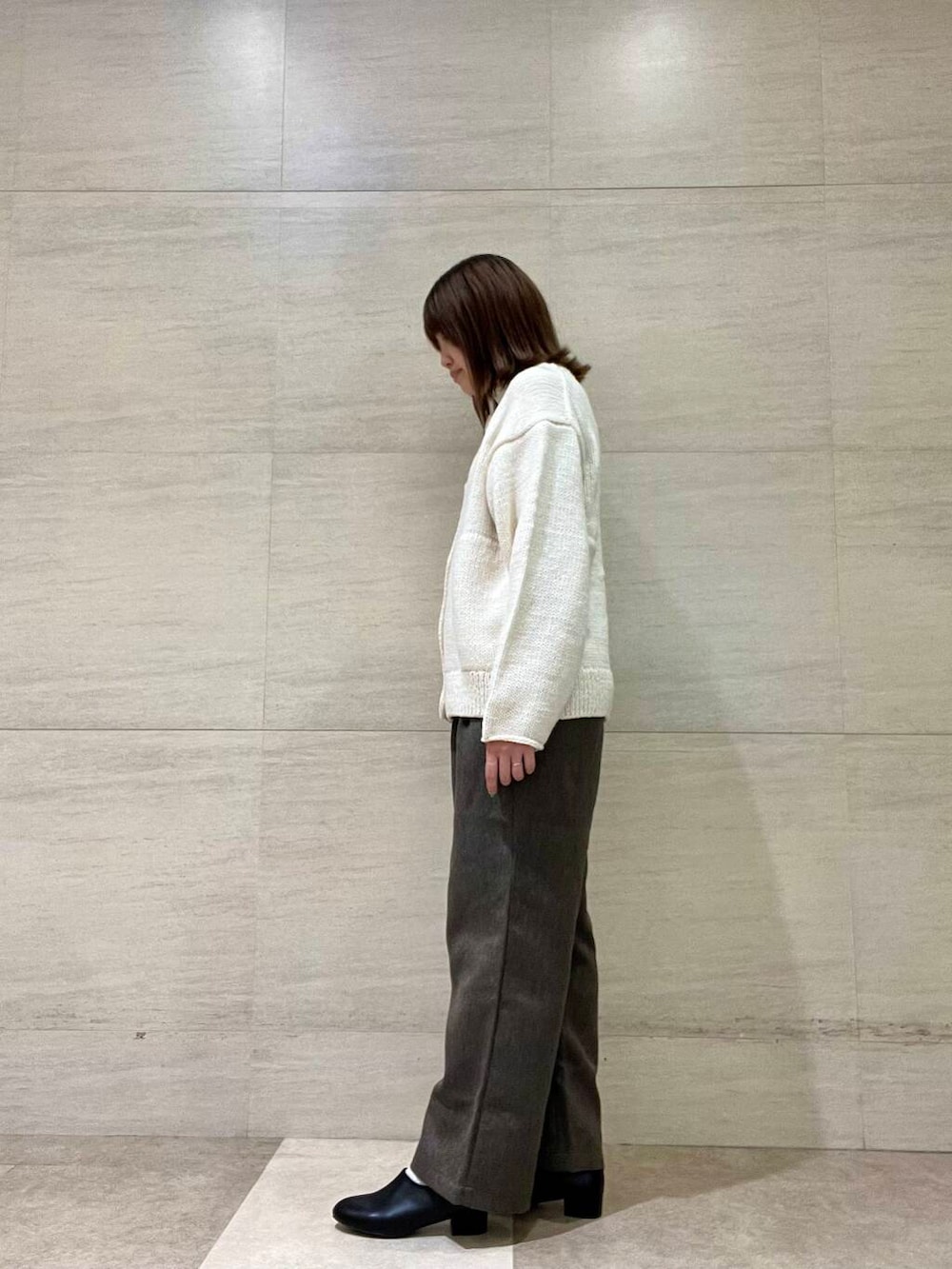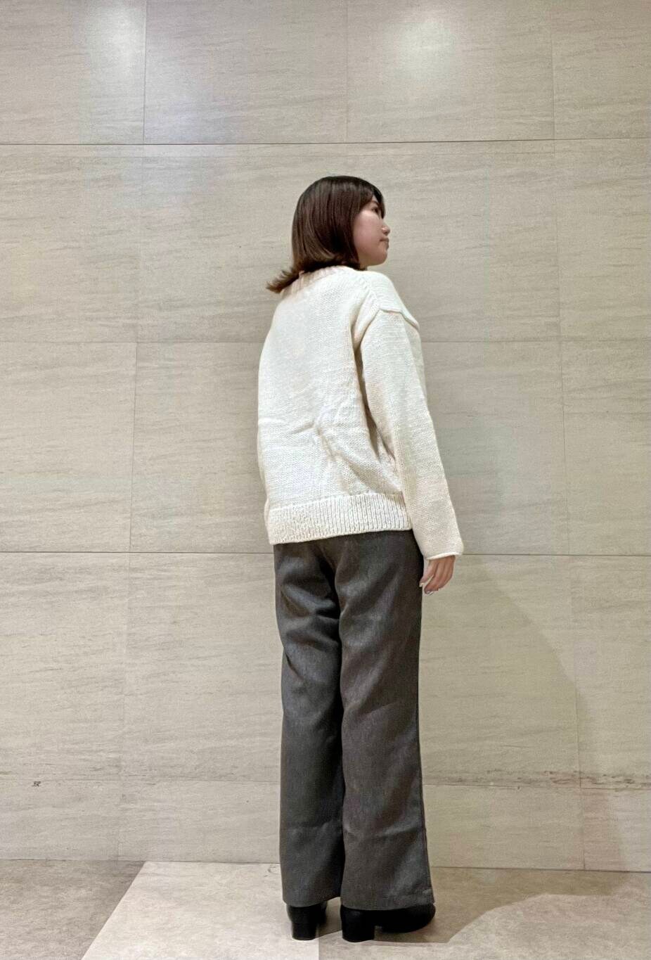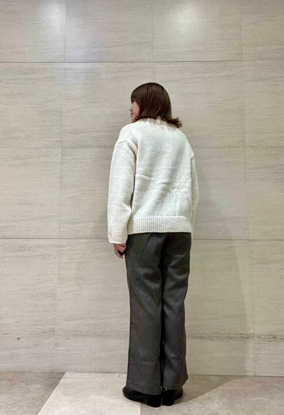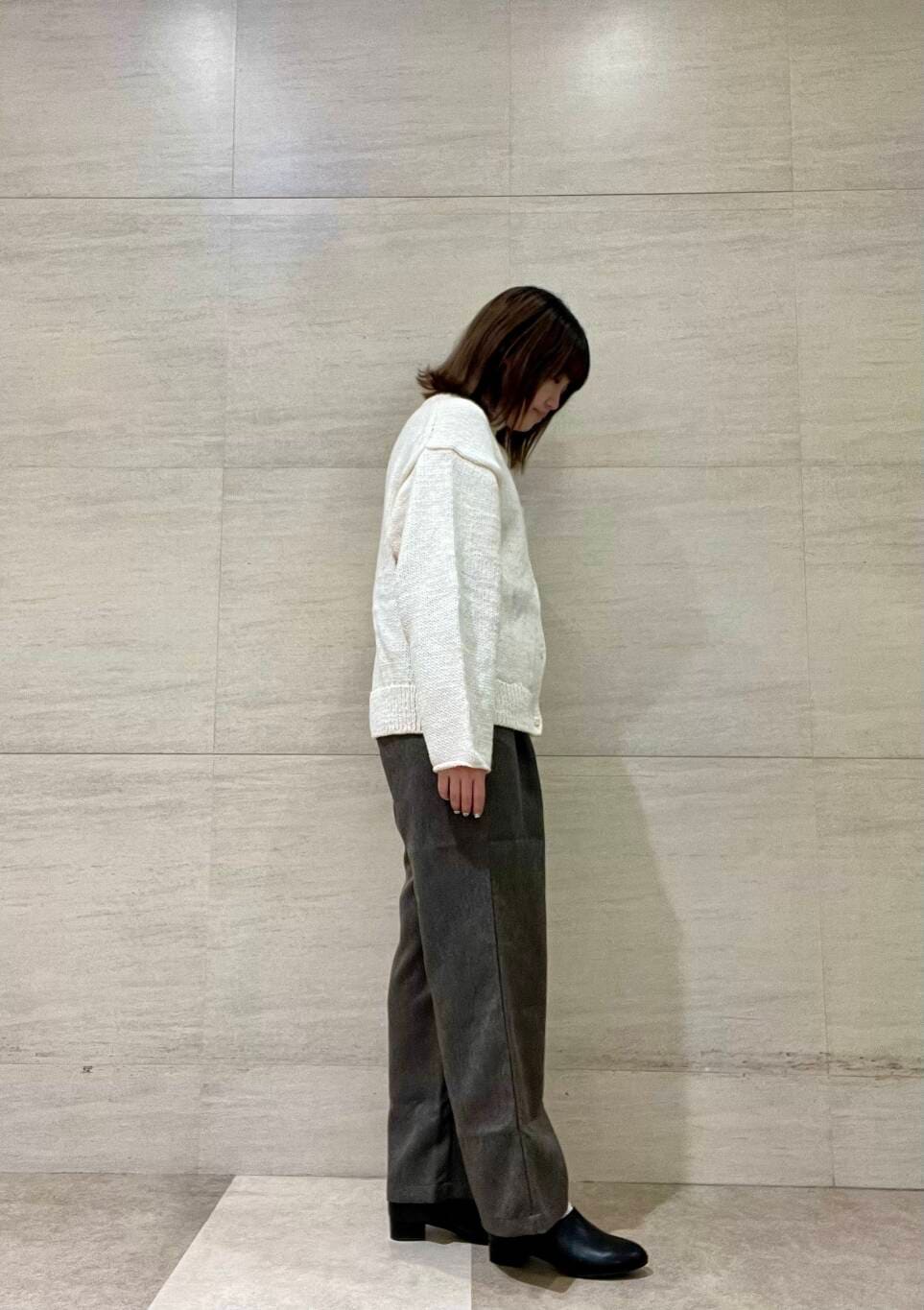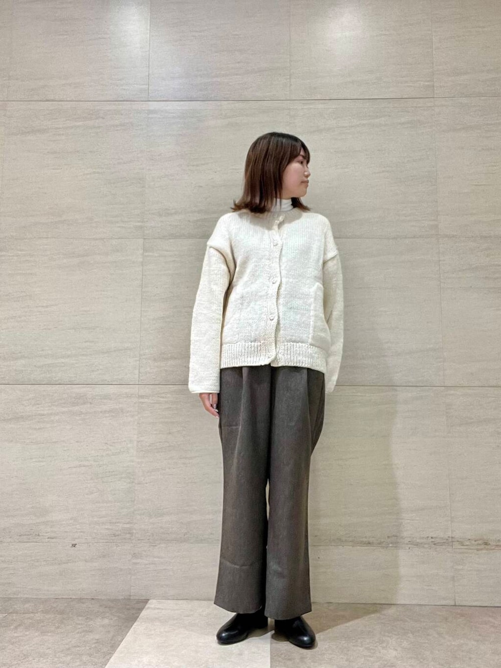 袖部分が膨らみがあるニットカーディガンは、インナーが少し厚めのものでもごわつかないです◎