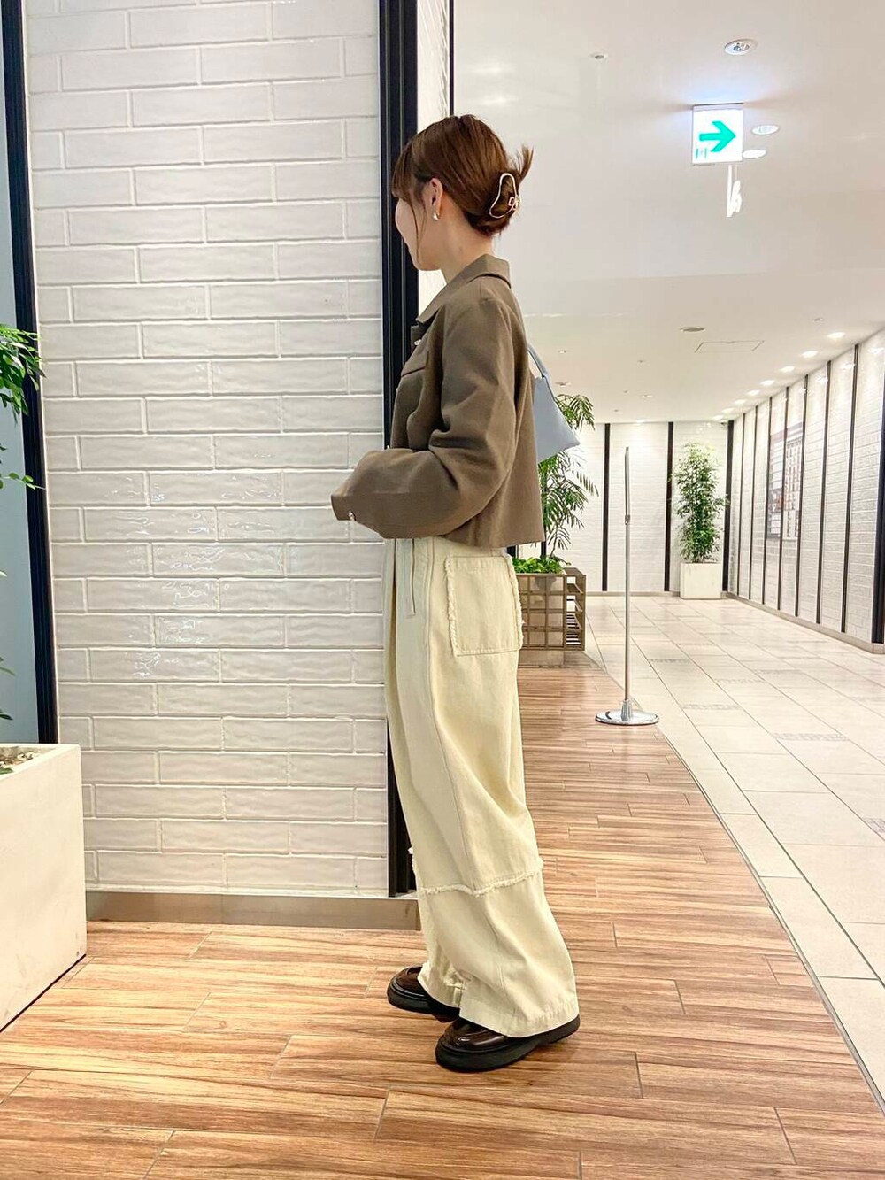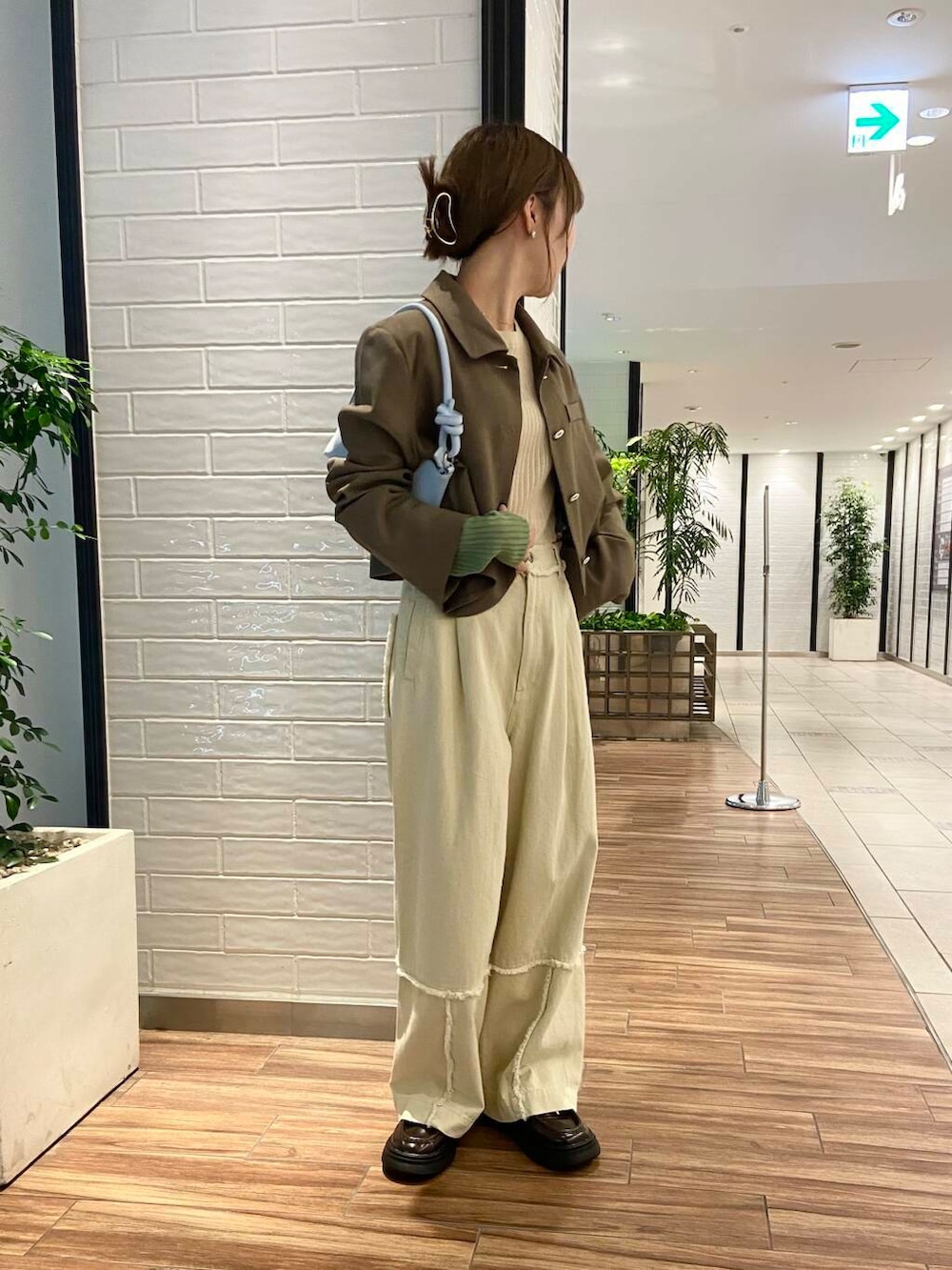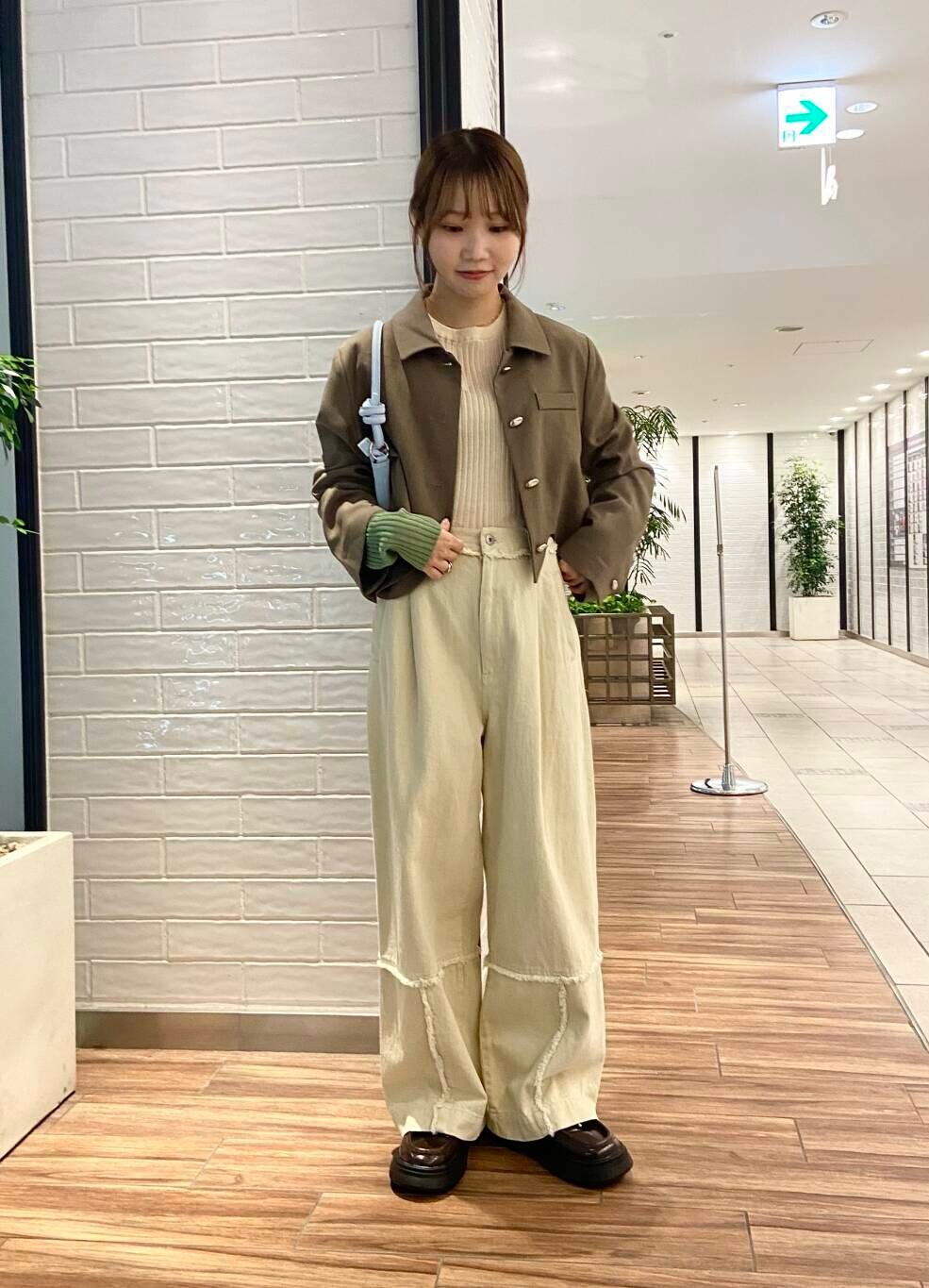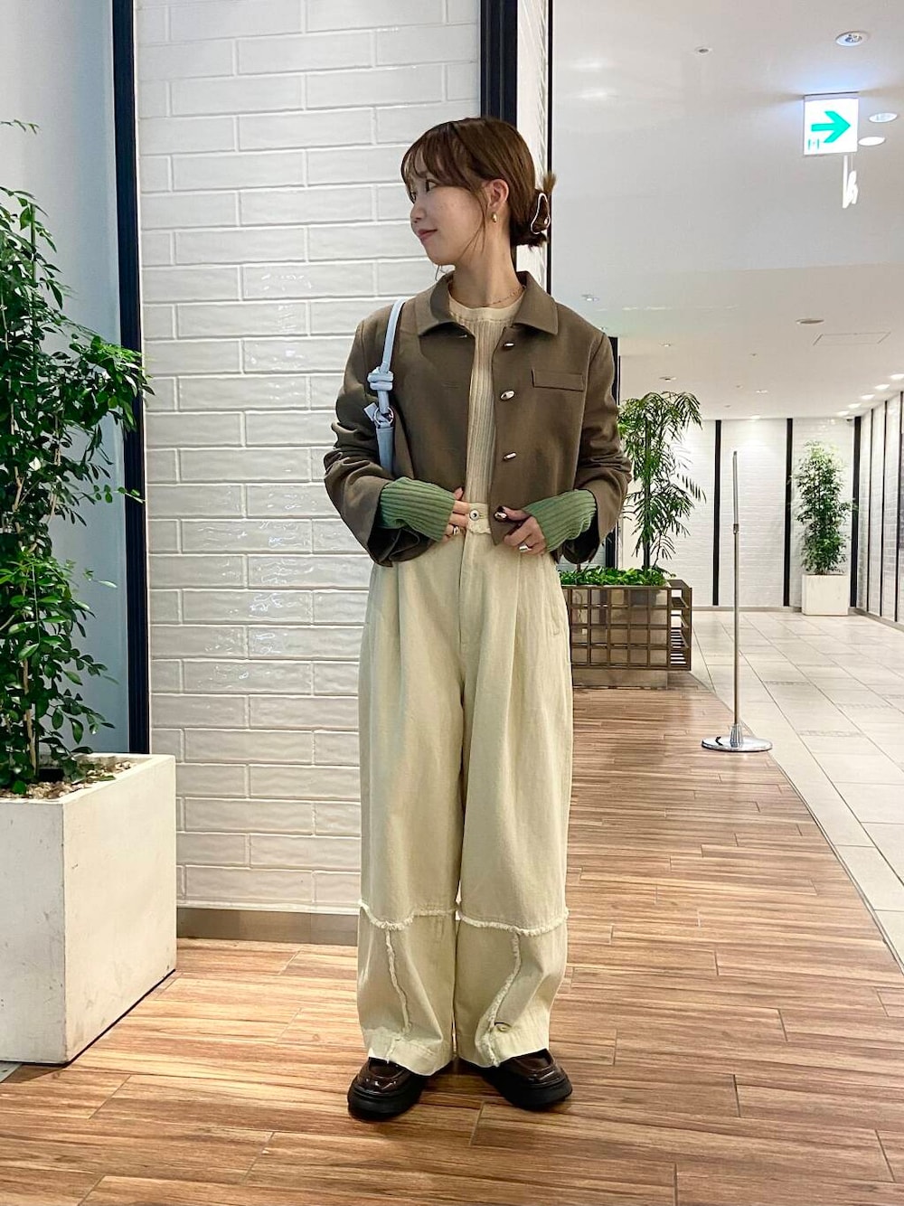 裾のデザインが可愛いショート丈ですがお袖は割とゆったりあるので厚手のニットやボリューム袖のブラウスも中に着れそうです!