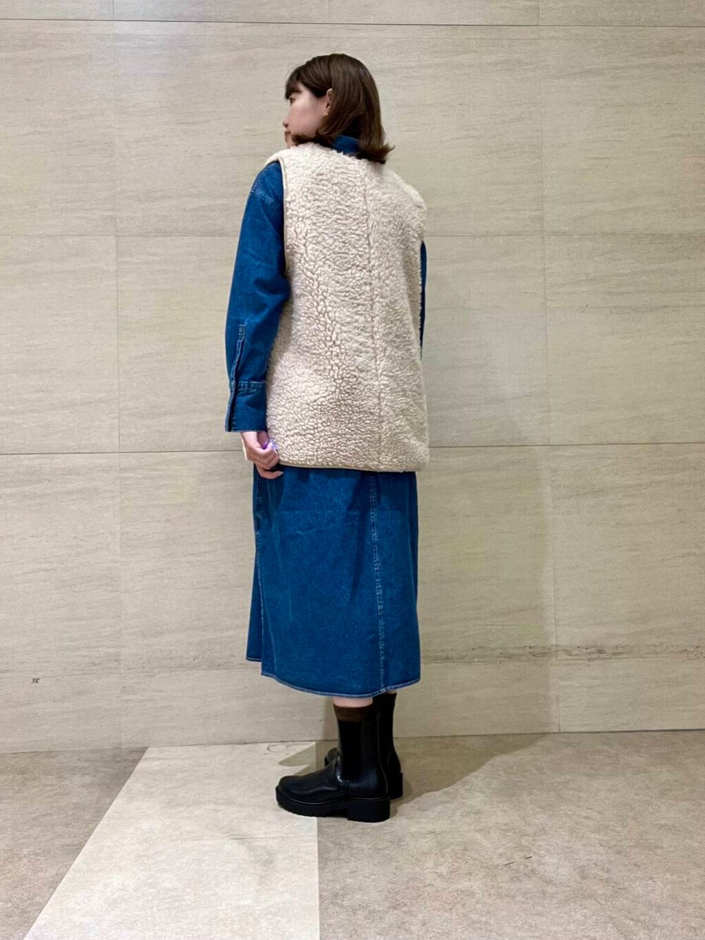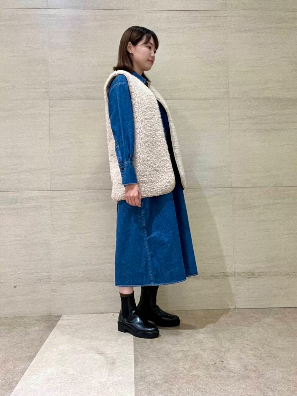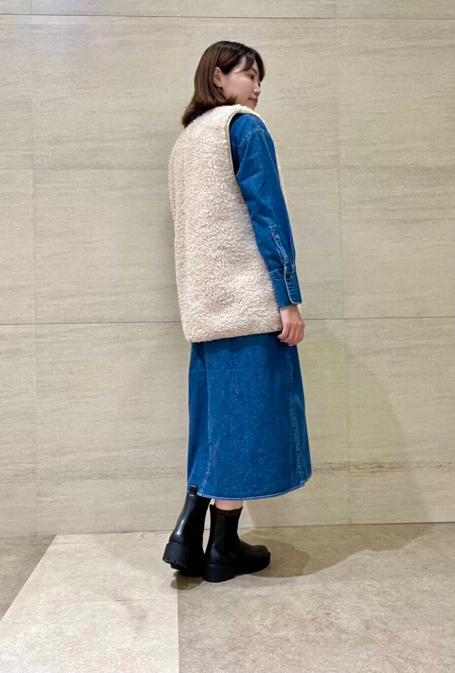 私の身長だと少し丈が短くなりますが、ブーツと合わせることで丈感の不安も解消されます!