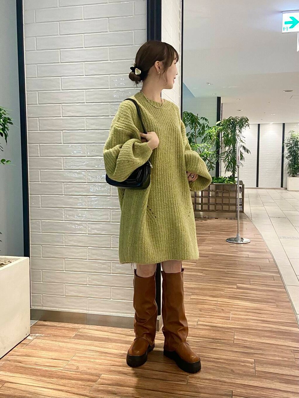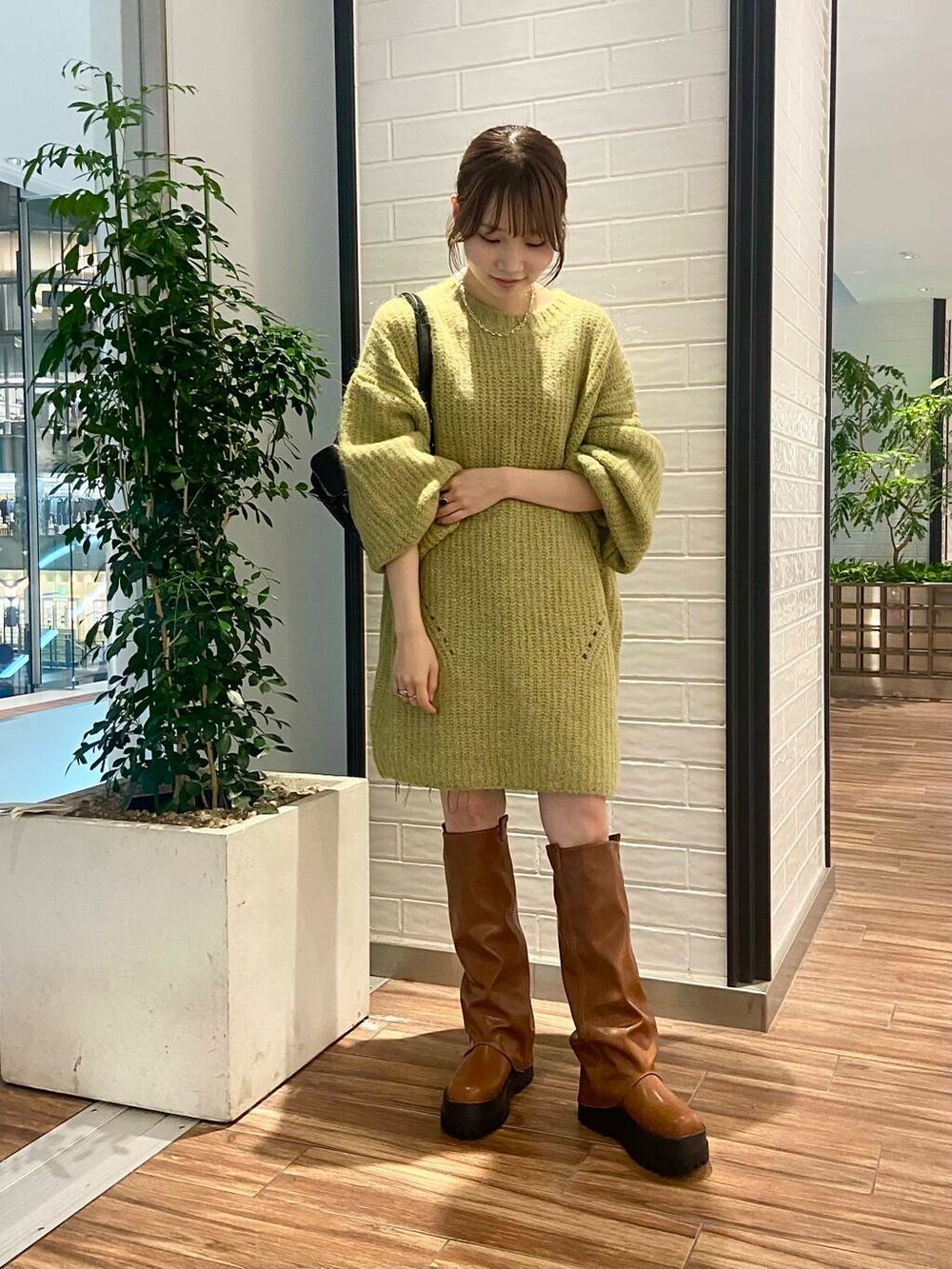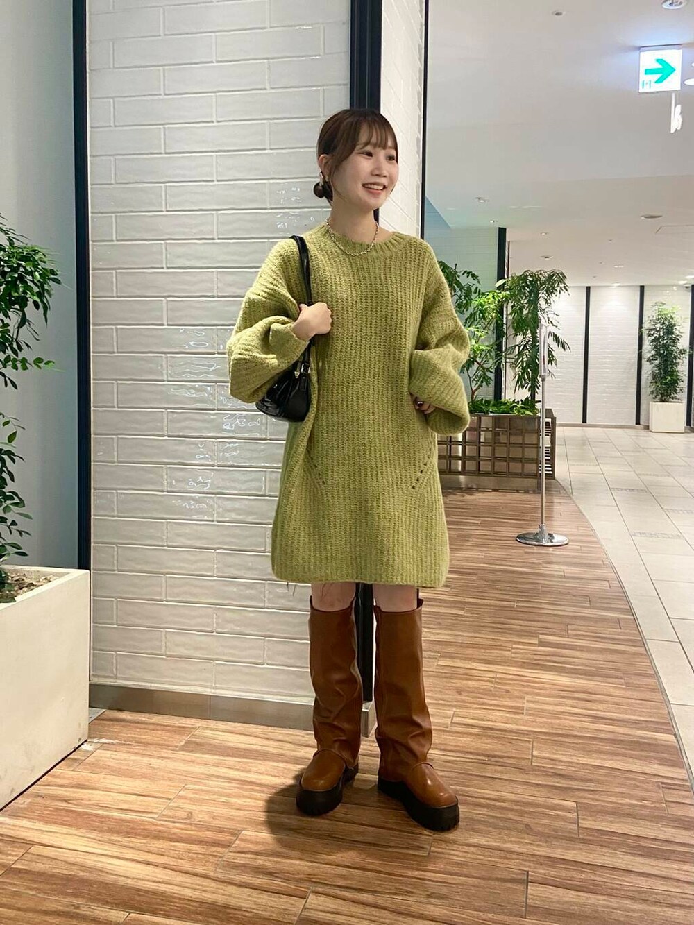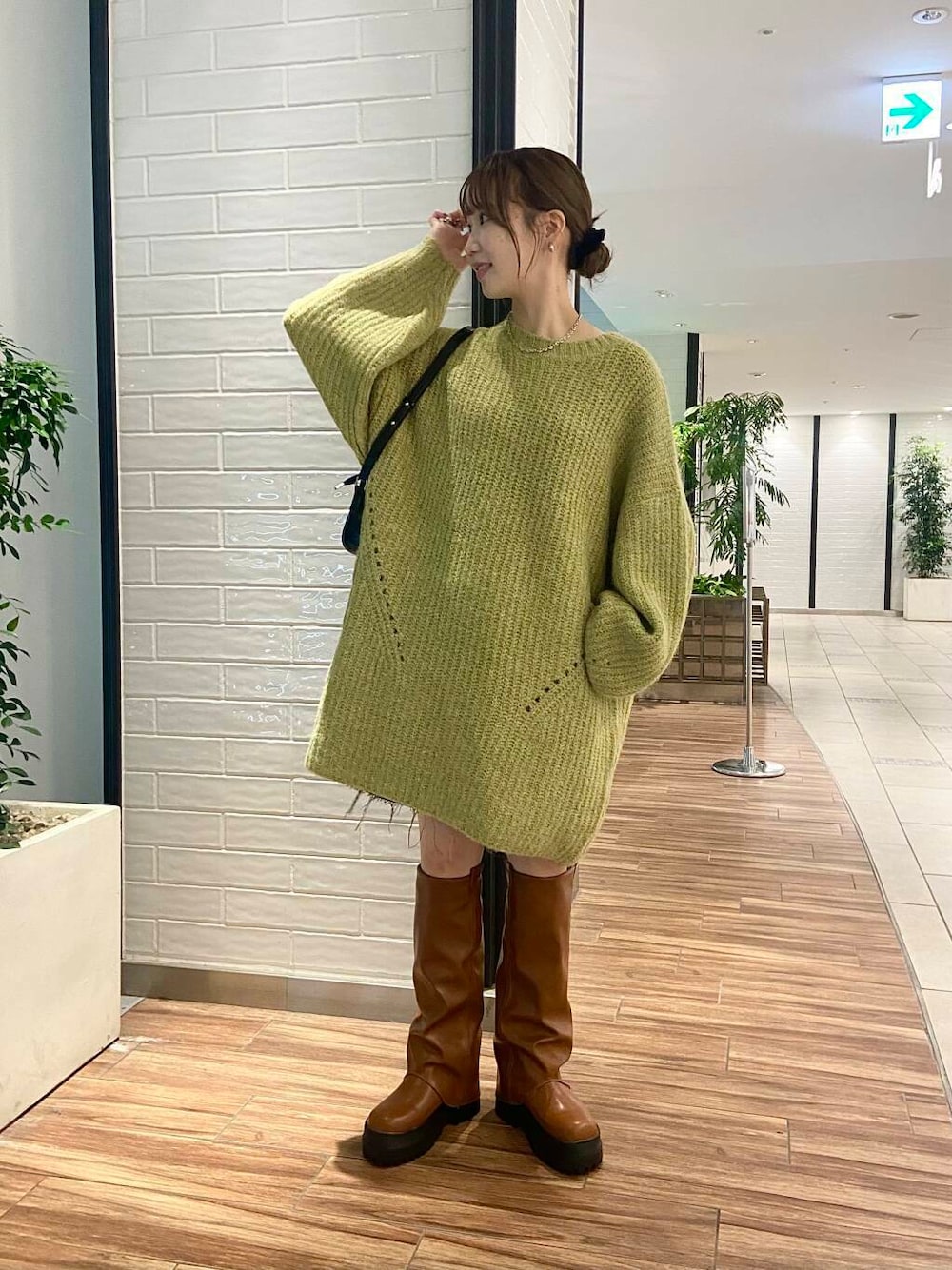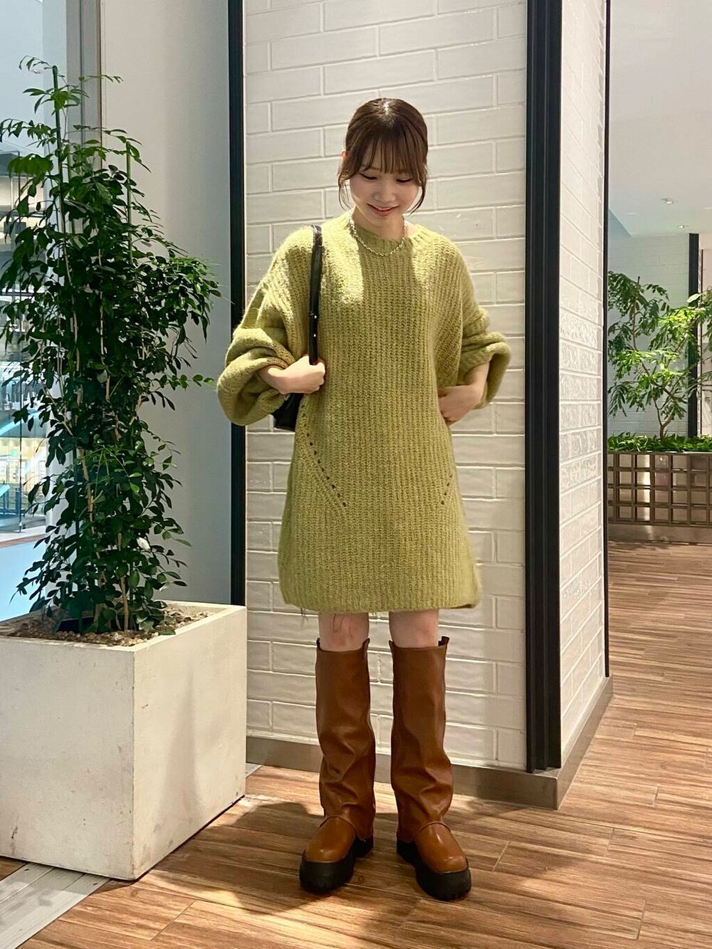 ニットワンピース、このカラーが1枚で華やかでおすすめです💚