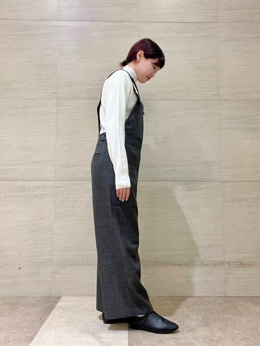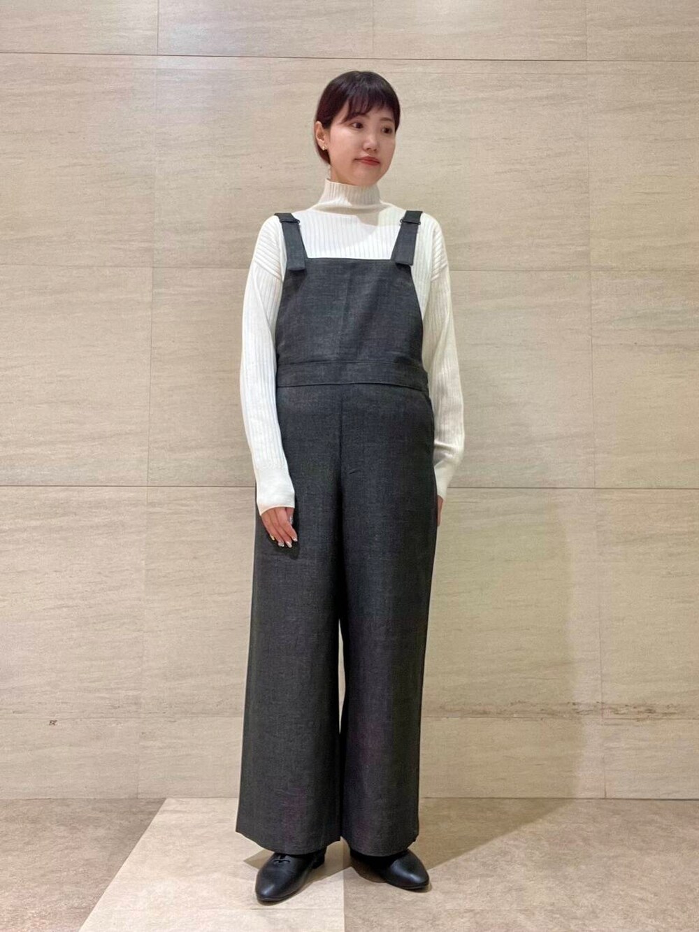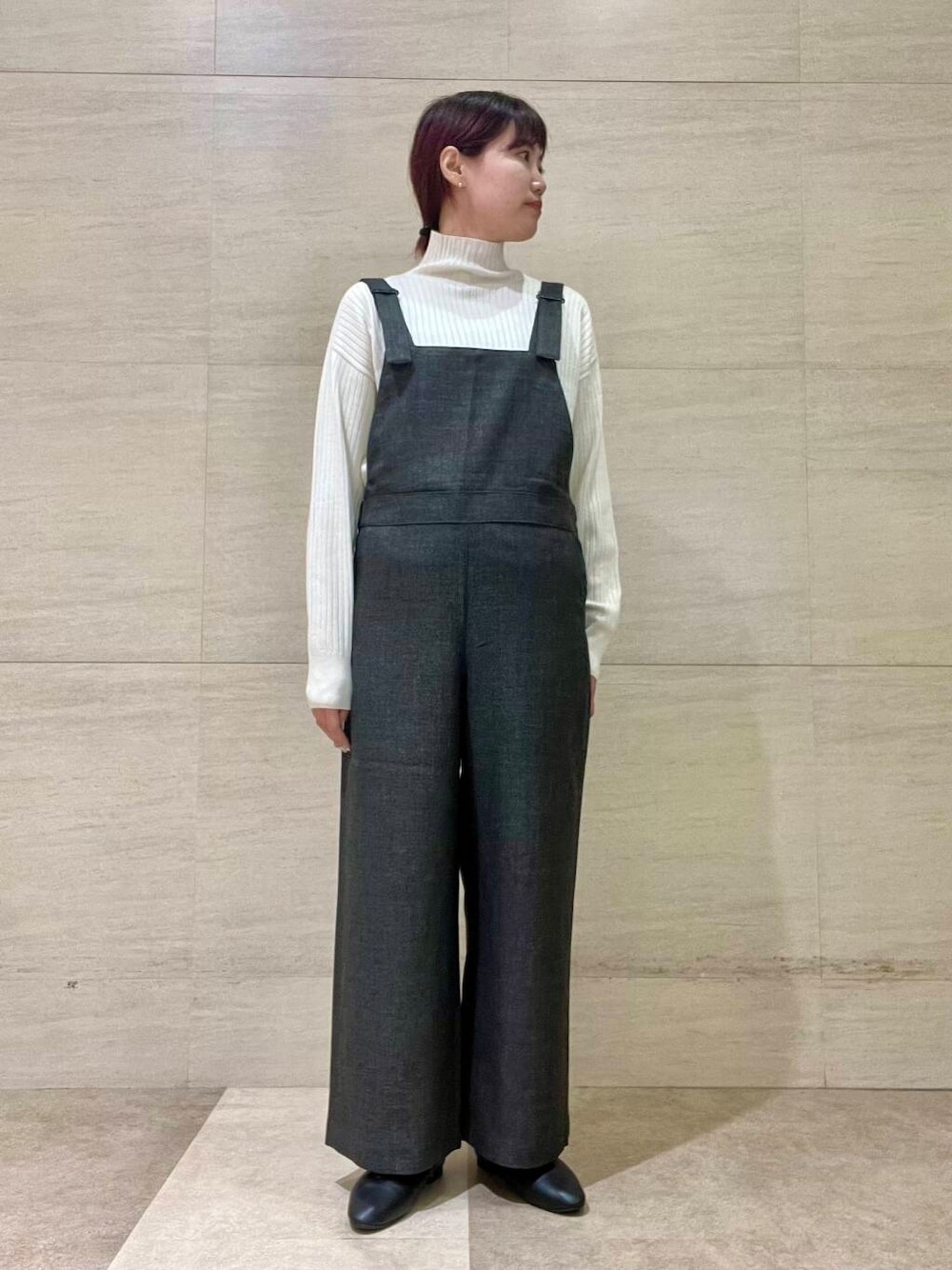 ウールライクのオーバーオールにハイネックのニットを合わせてみました◎