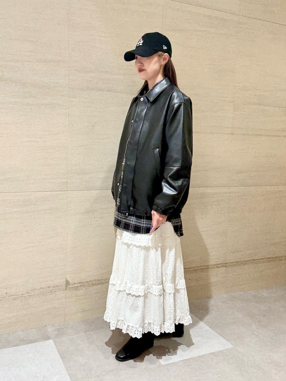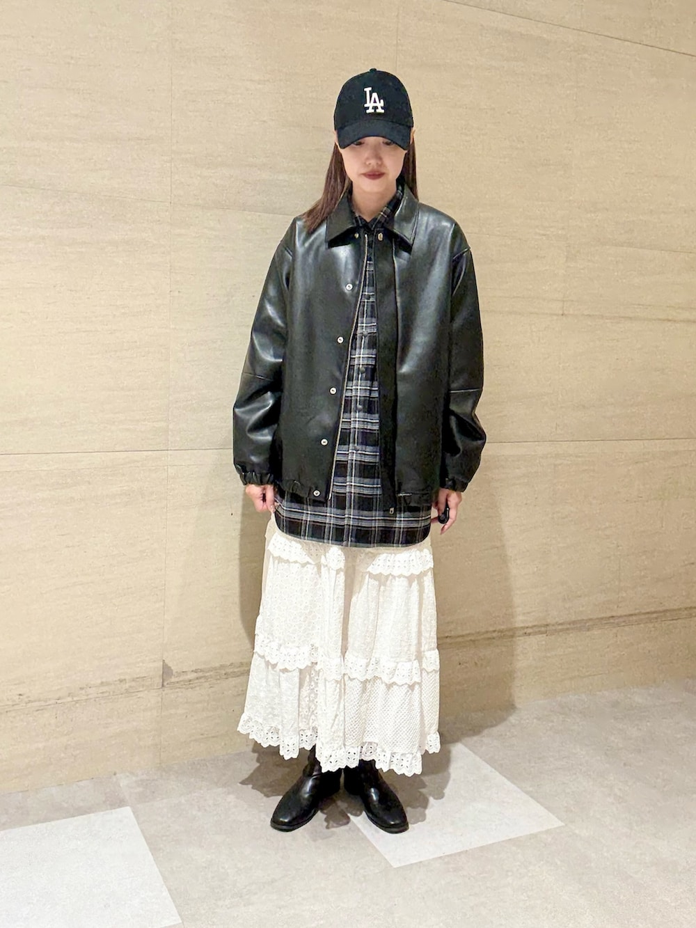 ヒールのあるブーツを合わせることでスタイルアップにもなります◎