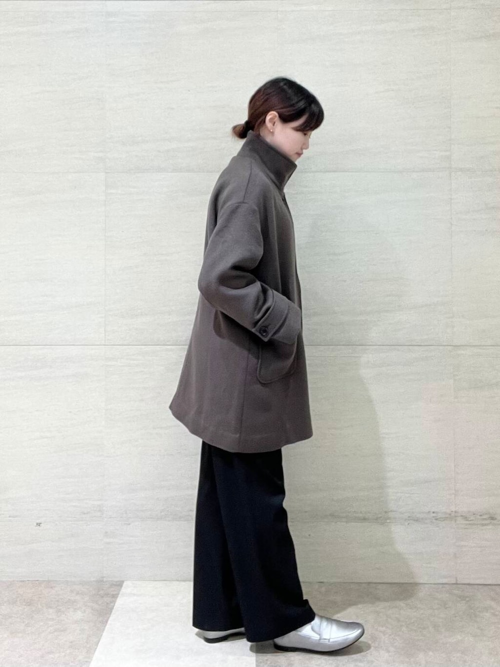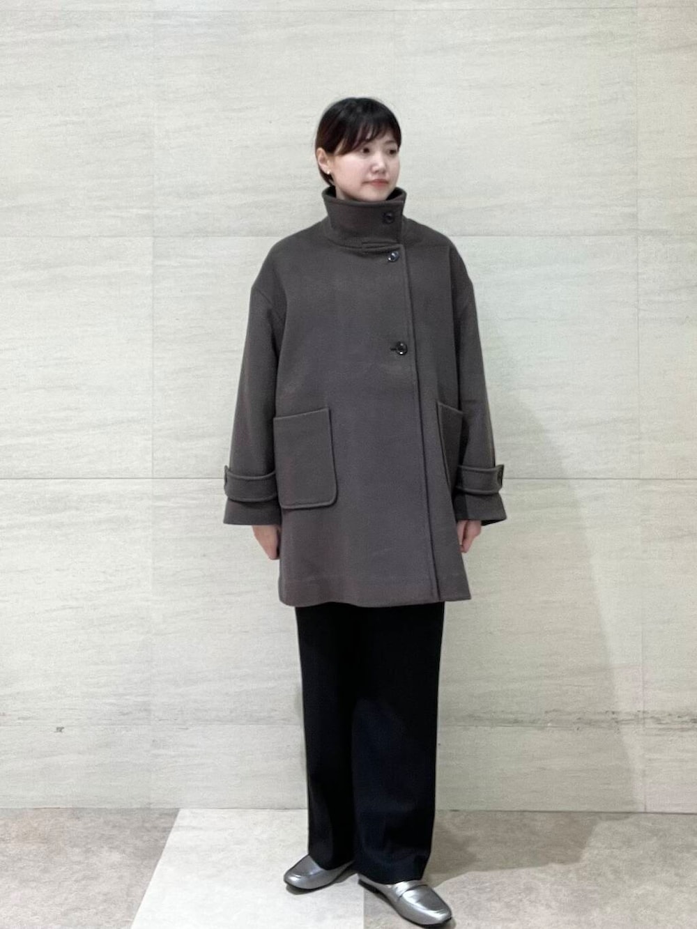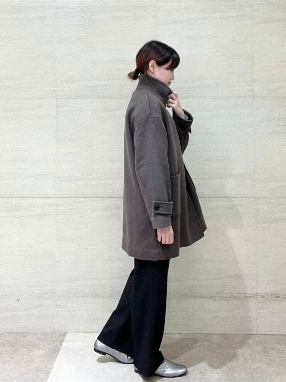 寒い時はボタンを上まで閉めると防寒対策にもなります◎