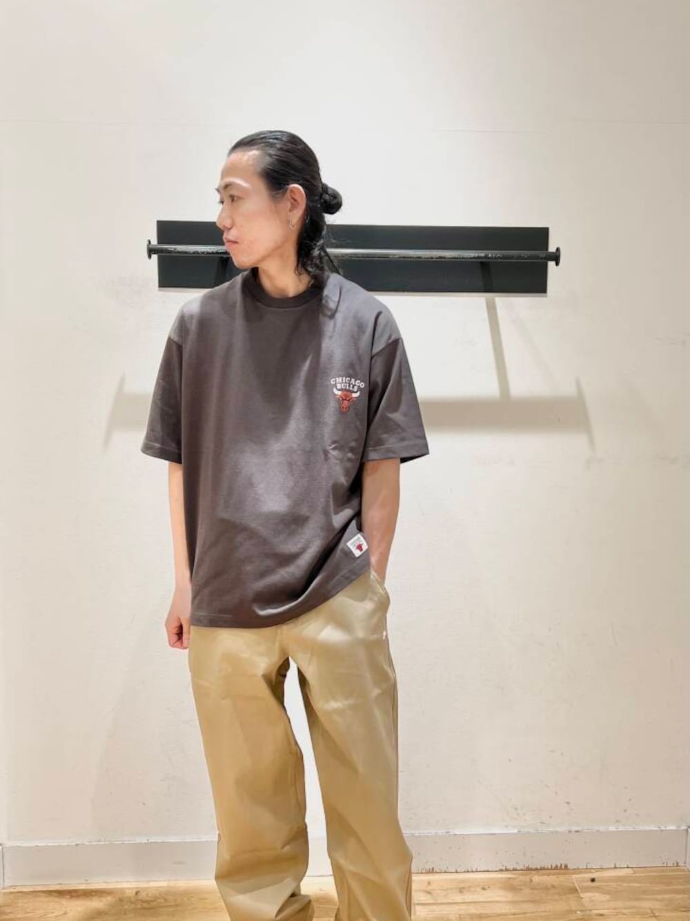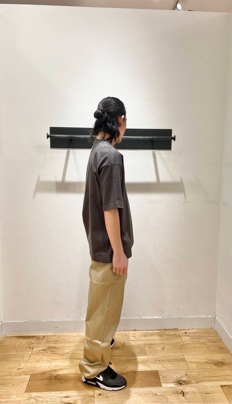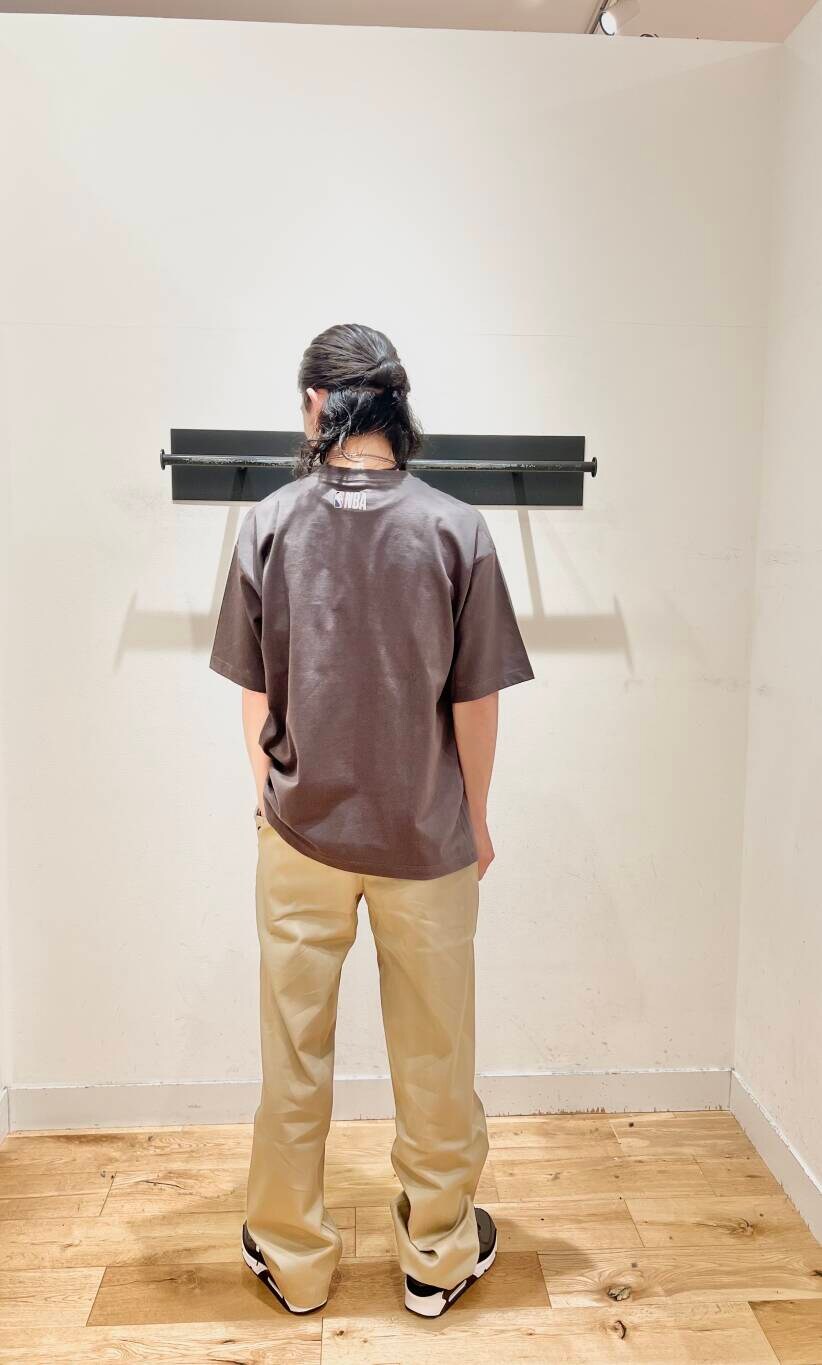 ムラの無い生地染めで、少し掠れさせたプリント手法を取り入れ、キレイめ過ぎず、加工感も強すぎないカジュアルな印象に仕上げています。